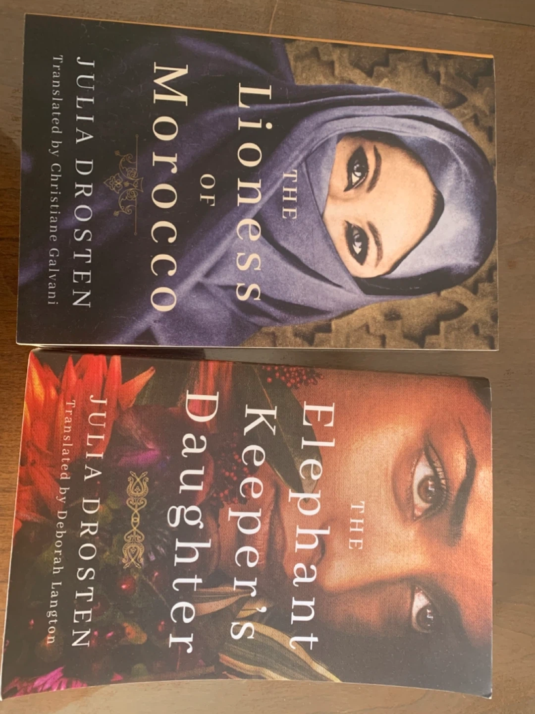 Two novels by Julia Drosten: 'The Lioness of Morocco' and 'The Elephant Keeper's Daughter'. These books are written by the same author and are great for fans of historical fiction.