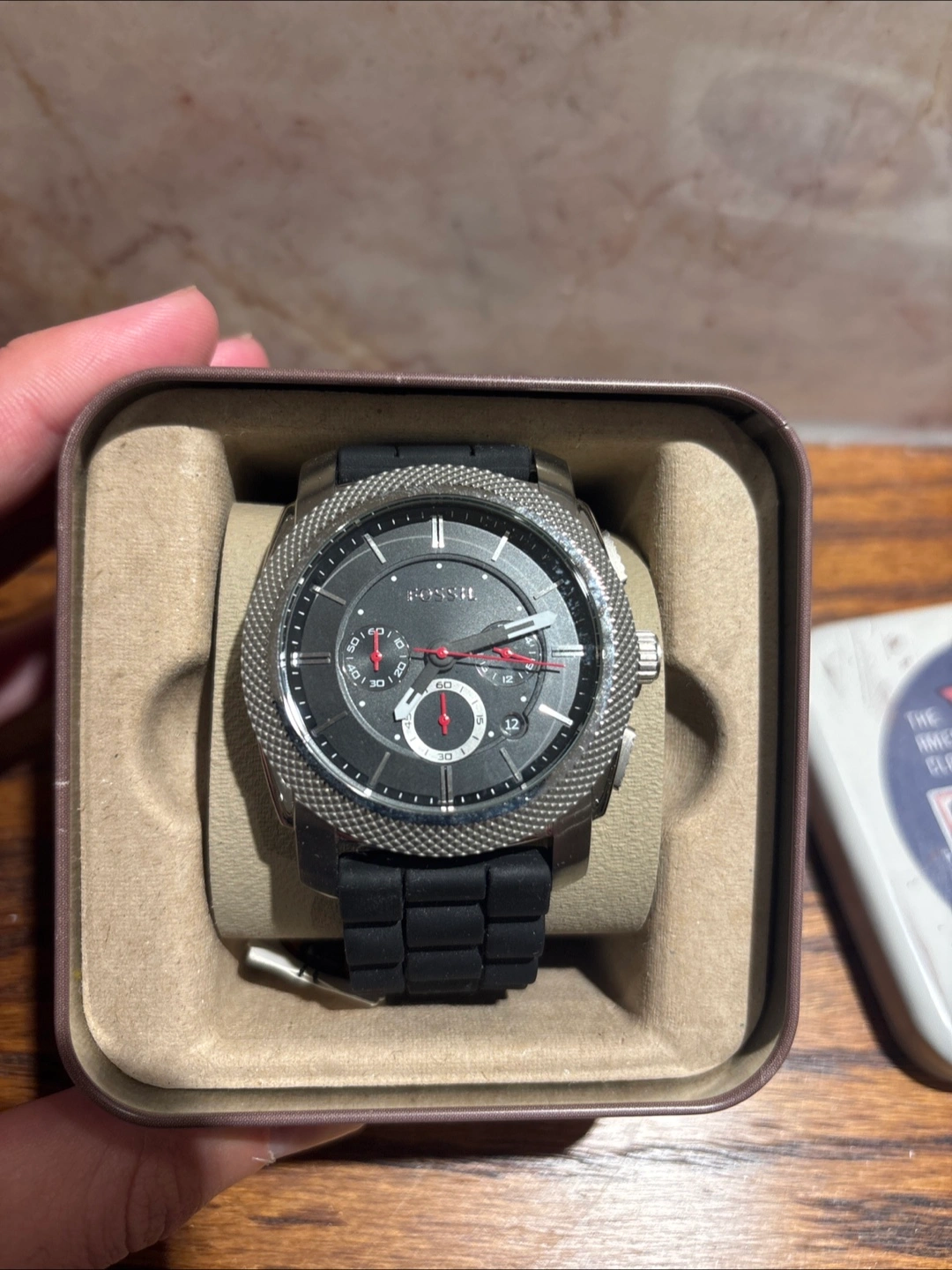 Selling a Fossil men's watch, model FS4572. It comes with its original box. The watch has a black band and a silver-tone case. A stylish timepiece for any occasion!