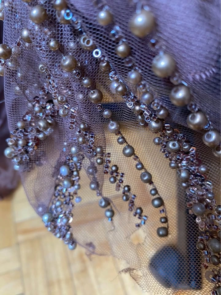 Lora dress in chocolate brown. Size 44 Elegant Beaded Sequin Off