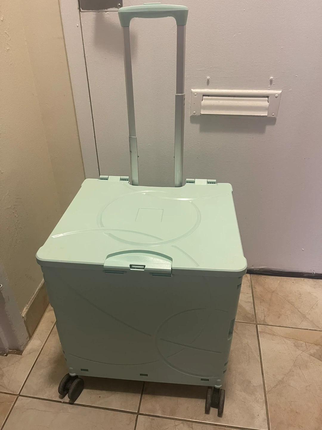 Mint Green Collapsible Rolling Storage Cart