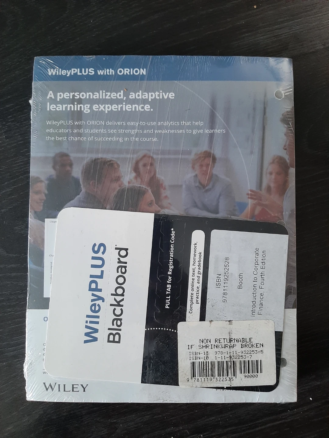 This is the WileyPLUS with ORION "Introduction to Corporate Finance" textbook, Fourth Edition. It's a Wiley Binder Version and includes WileyPLUS Blackboard access.