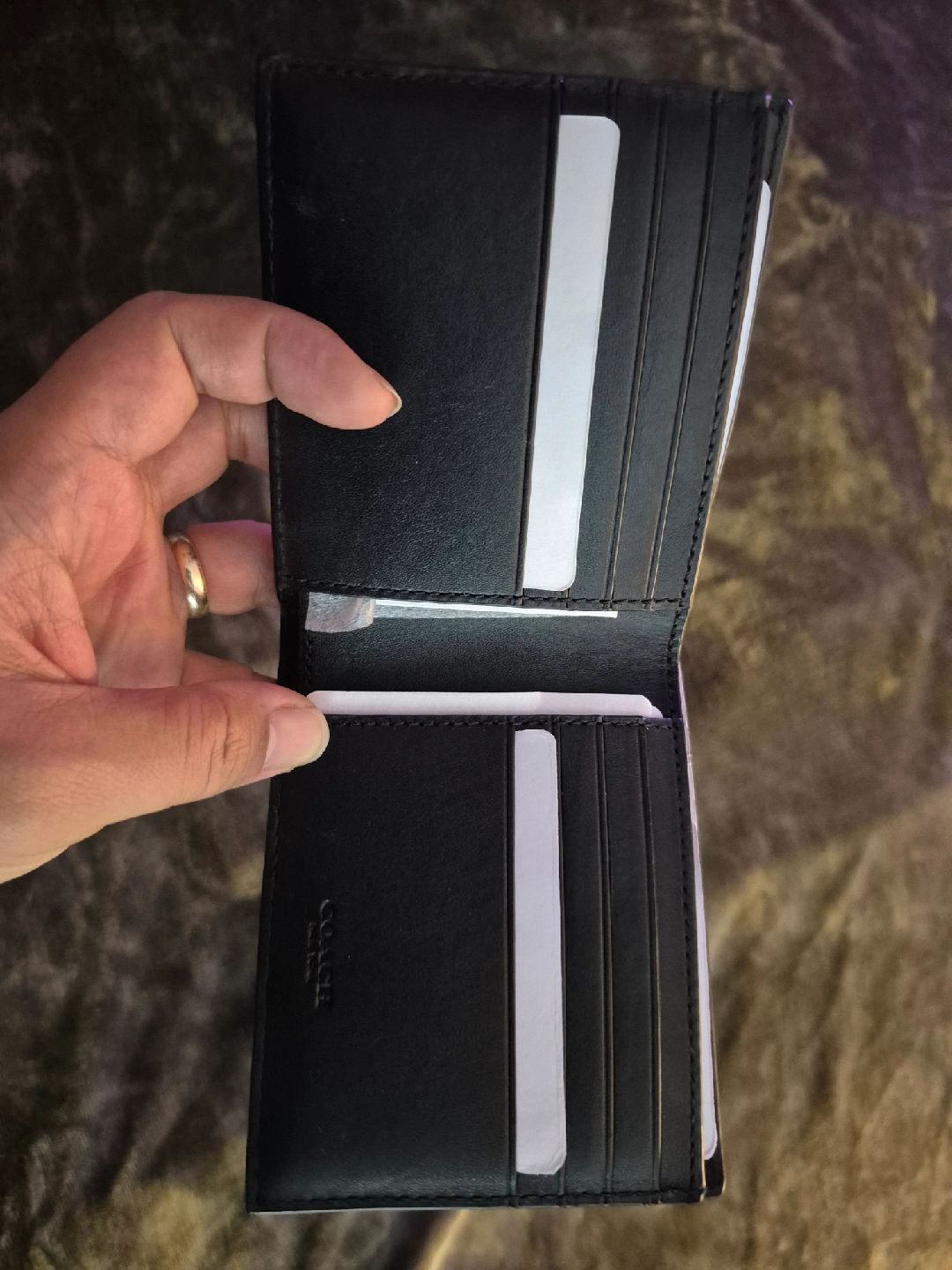 Selling a brand new, authentic Coach wallet! It's a sleek black leather bifold style with plenty of card slots. Never been used and ready for a new home