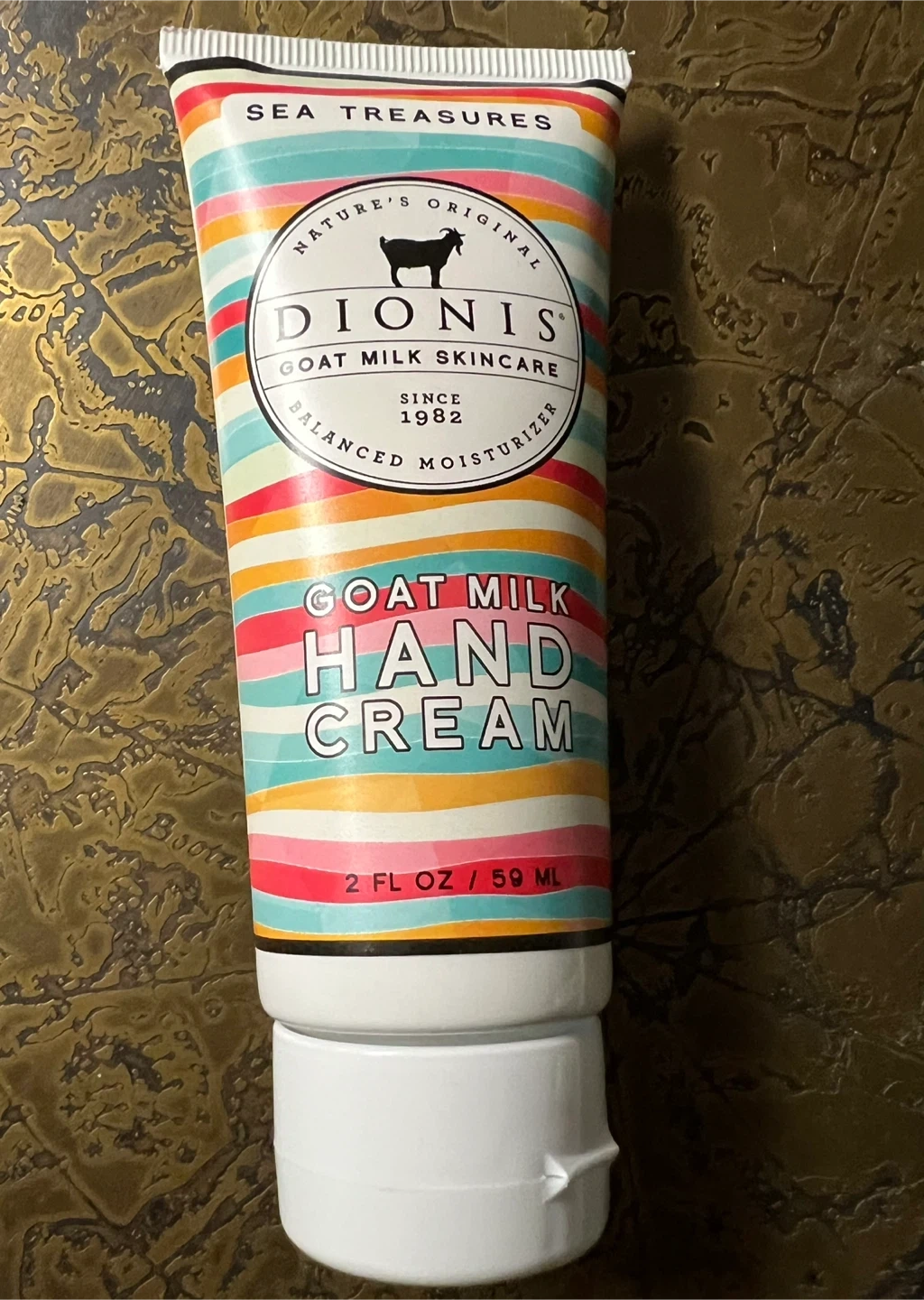 This is a Dionis Goat Milk Hand Cream. It's a balanced moisturizer. The size is 2 fl oz / 59 ml. This cream is great for keeping hands soft! Scent is “Sea Treasures.”