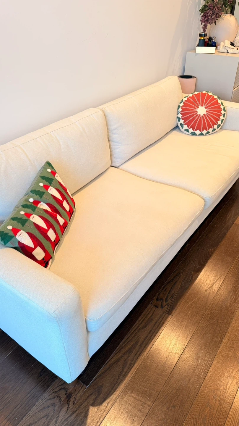 Beautiful cream upholstered sofa in very good condition. Clean, modern design that fits perfectly in a minimalist or contemporary interior.