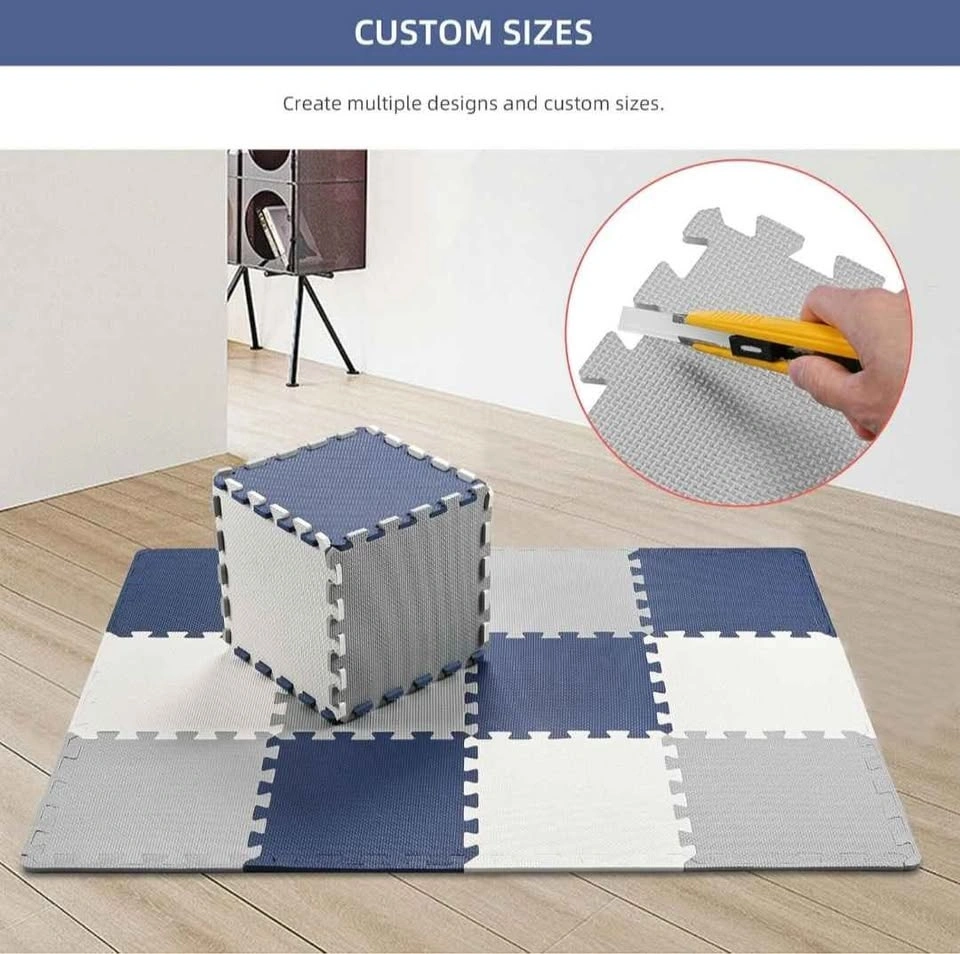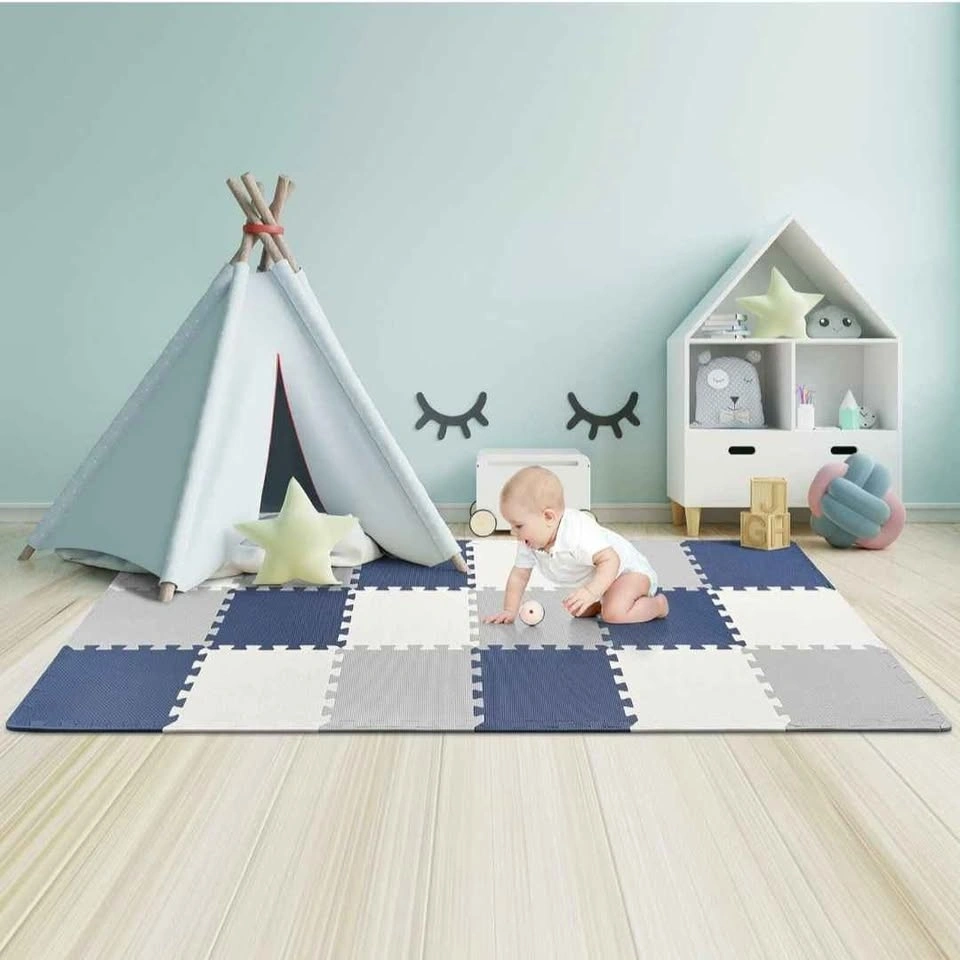 LIVINGBASICS Baby Play Mat, 0.39" Thin 18 pcs Puzzle. EVA Foam Exercise Play Mat with 1.62 Sqm Coverage. Interlocking Floor Tiles, Portable Crawling Floor Mats for Kids Toddler (Blue, Grey, White). The box was opened as seen in the picture but the mat was not used. Reason for selling: Wrong color. Pick up in Harmony and Rossland Oshawa. Cash only.