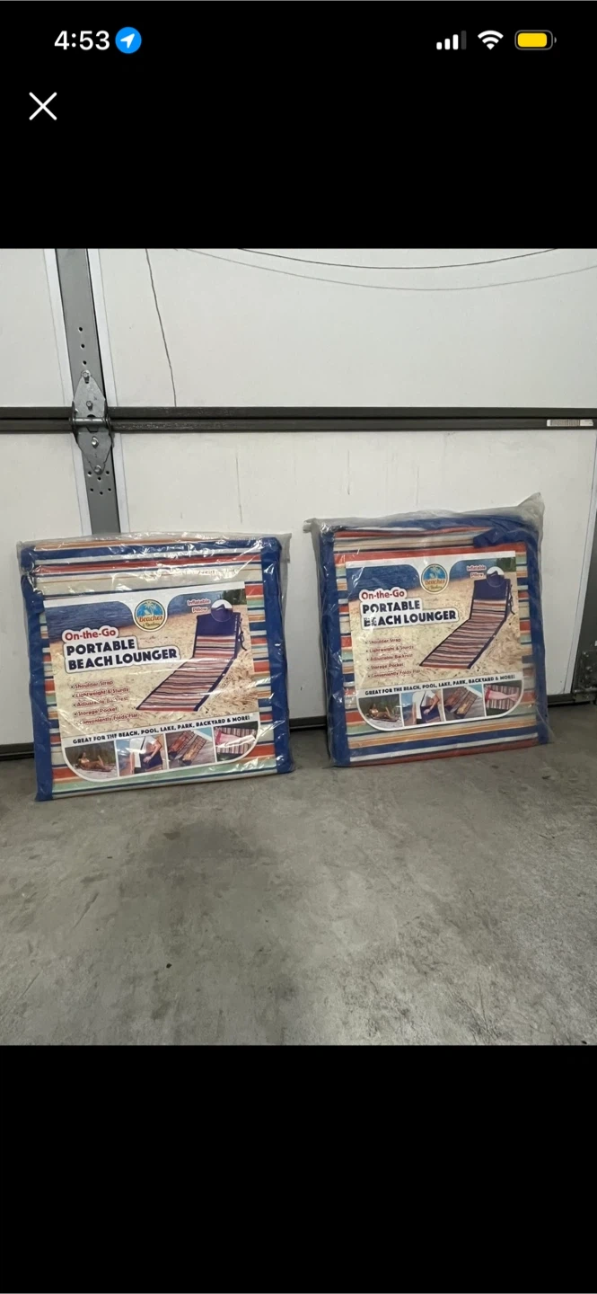 Grab these set of two On-the-Go portable beach loungers for your next outing. They feature an inflatable pillow, shoulder strap, adjustable backrest, and a convenient storage pocket. They conveniently fold flat for easy transport and this portable beach lounger is lightweight and folds flat for convenience. Perfect for the beach, pool, park, or backyard!