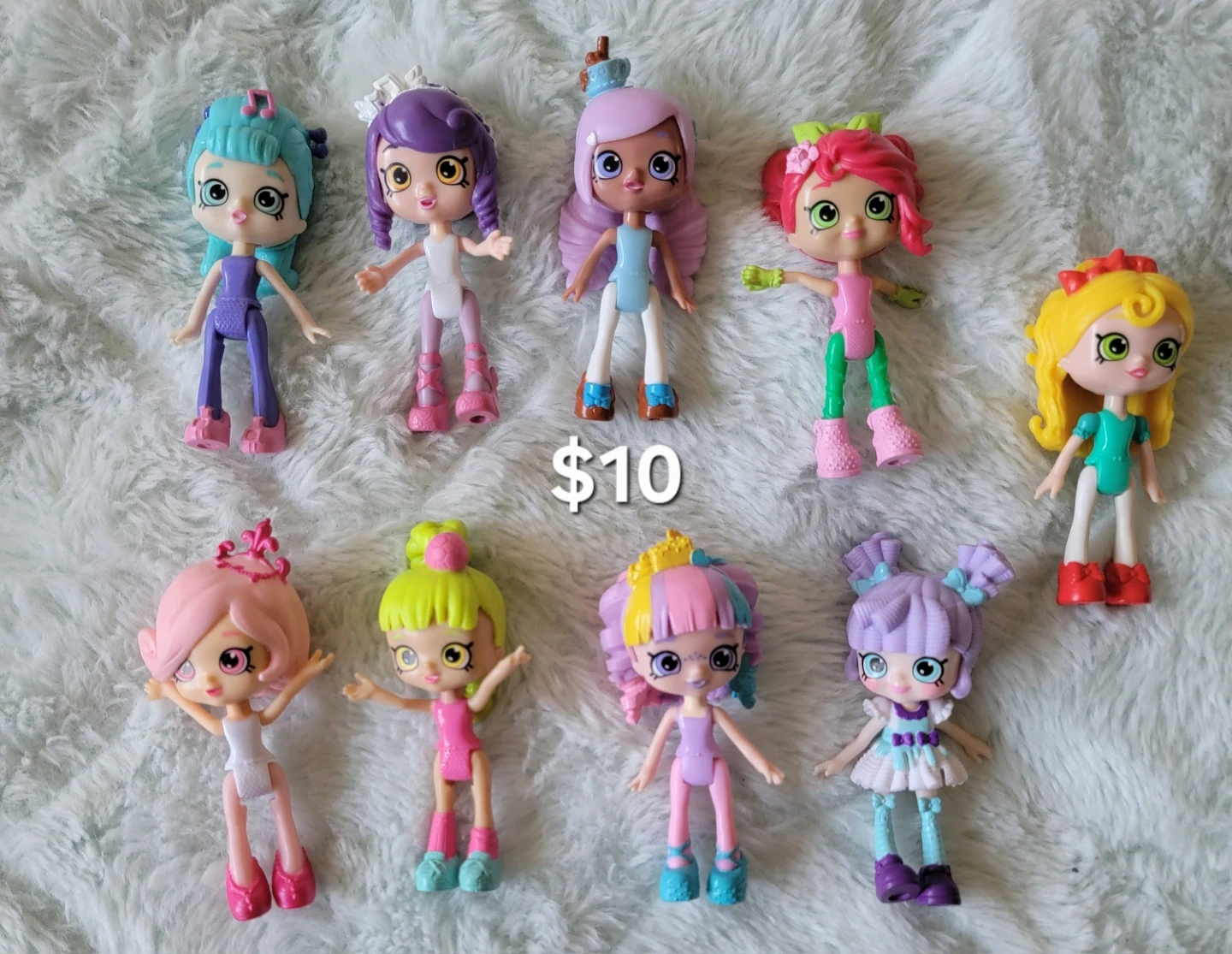 Assorted Shopkins dolls and accessory bags are available for purchase. The dolls are $2 each or all for $40. Accessory bags are $5 each or all for $25. These are great for imaginative play!