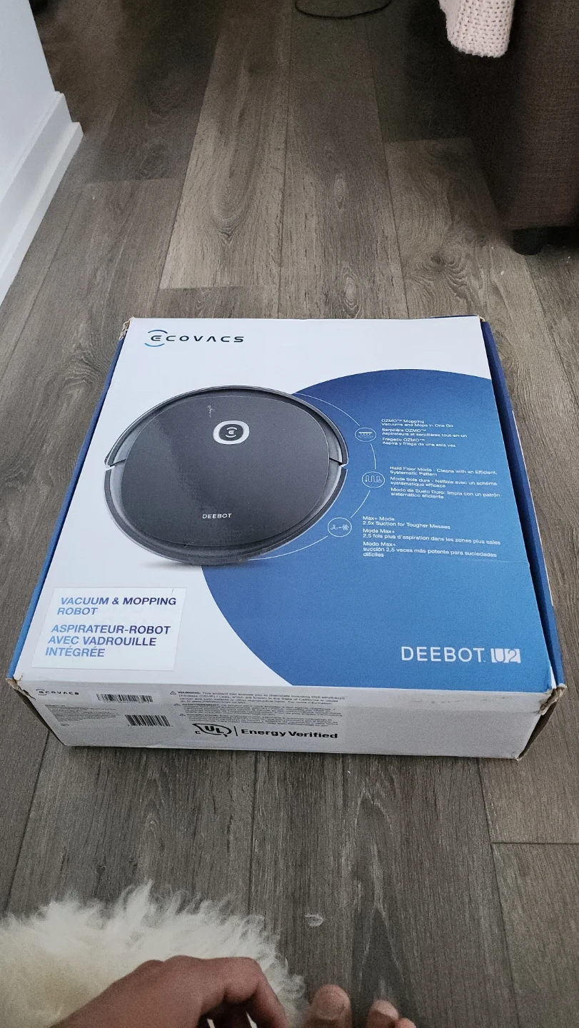 Selling an Ecovacs Deebot U2 vacuum and mopping robot in original packaging.