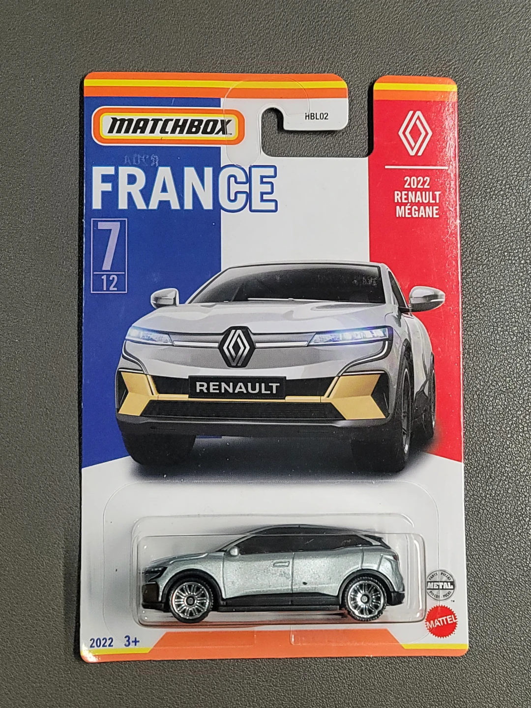 This is a 2022 Matchbox die-cast toy car featuring the Renault Mégane. It's part of the France series, number 7 of 12. Made with metal parts.