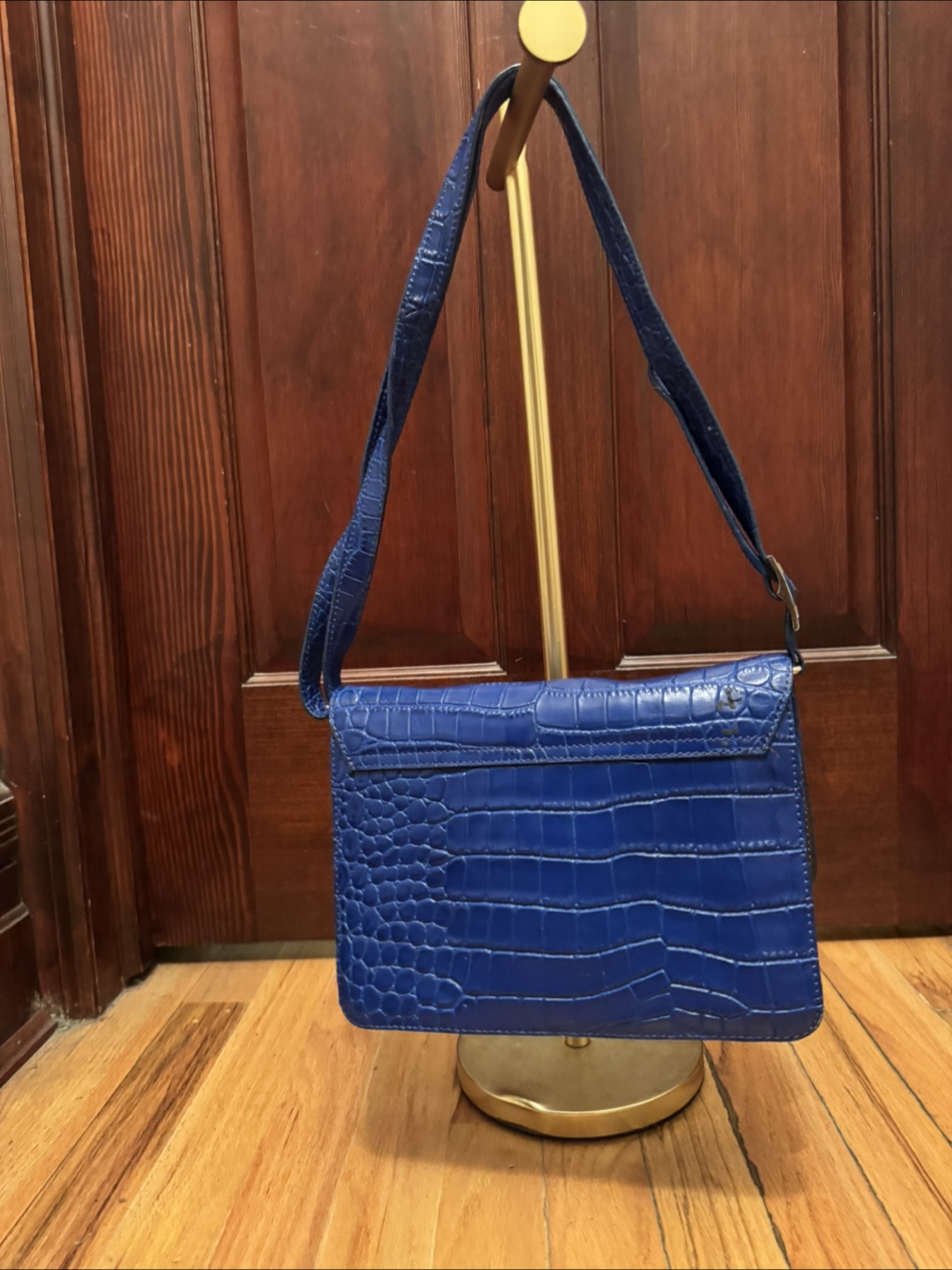 This is a cute blue shoulder bag from DKNY! It has a croc texture and a gold clasp. It's in great condition and perfect for everyday use