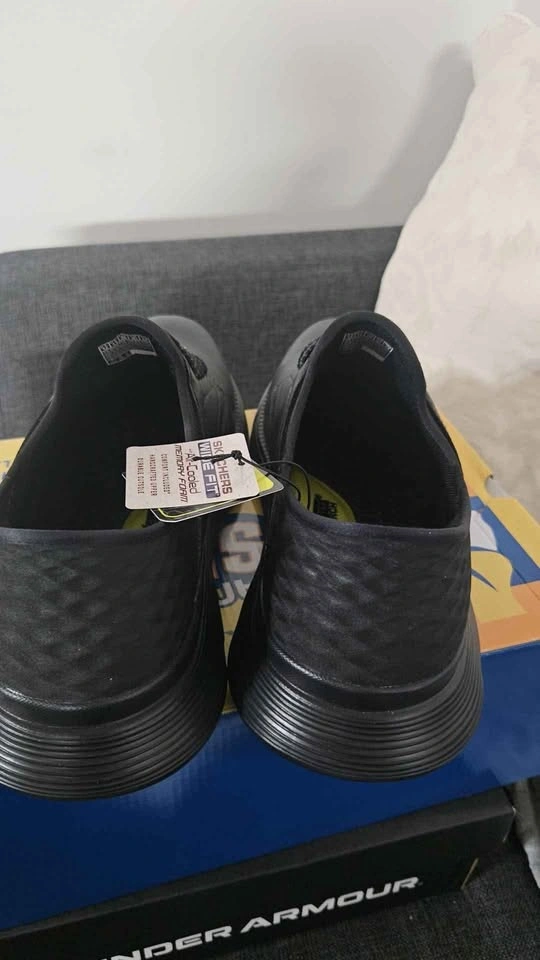 Skechers slip ons, complete with tags and the original box.