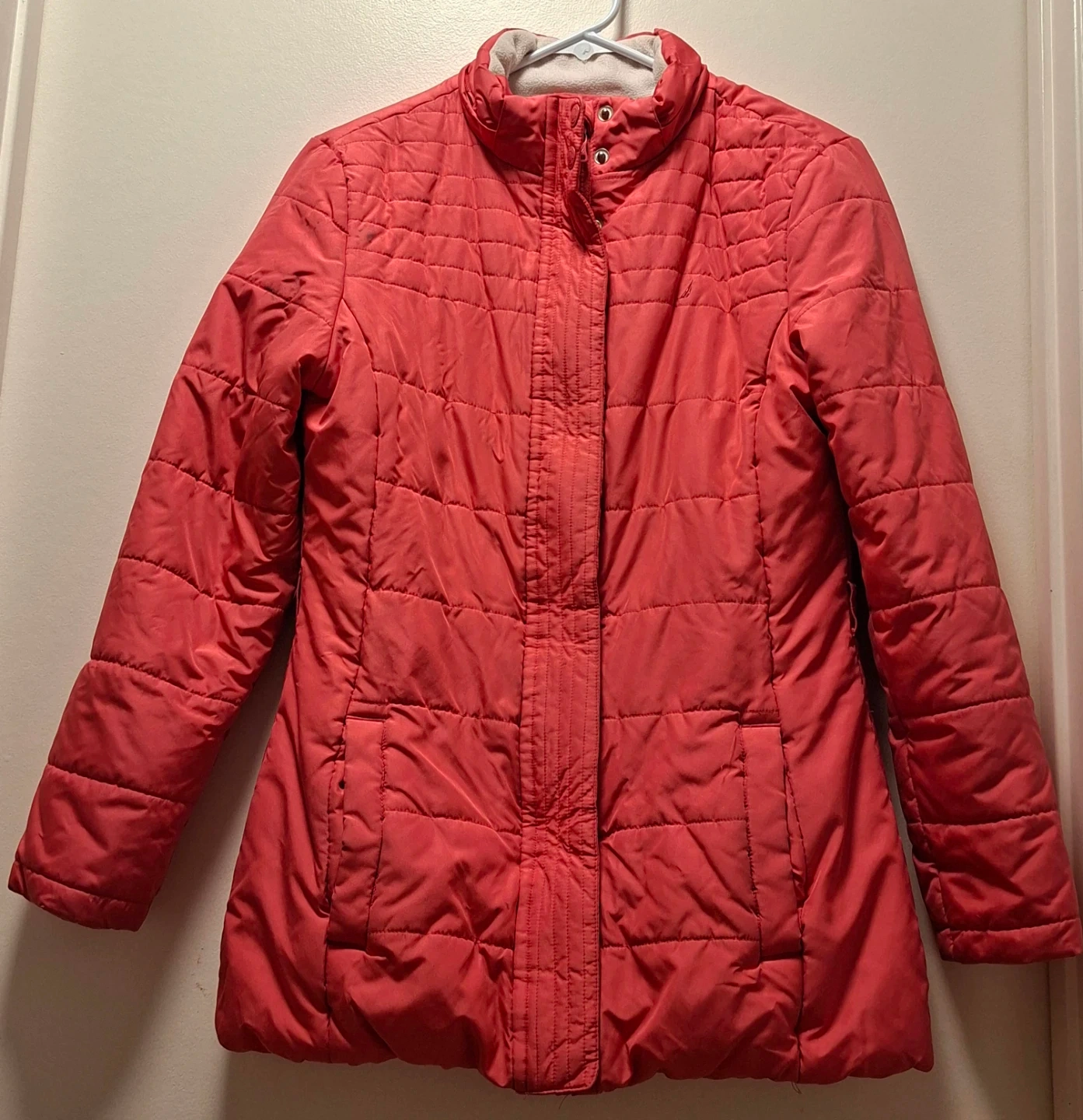 Comfy Nautica quilted puffer jacket. Red color, size L (14/16). Some ink stain on the left side of the jacket.
