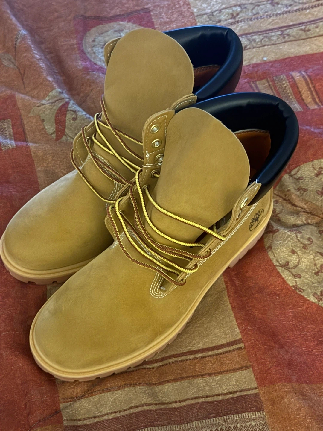 Selling a pair of classic Timberland boots. They're in great shape and ready for anything! These are durable and stylish, perfect for our Canadian weather. They have the classic wheat colour and lace-up style. Size 10 men