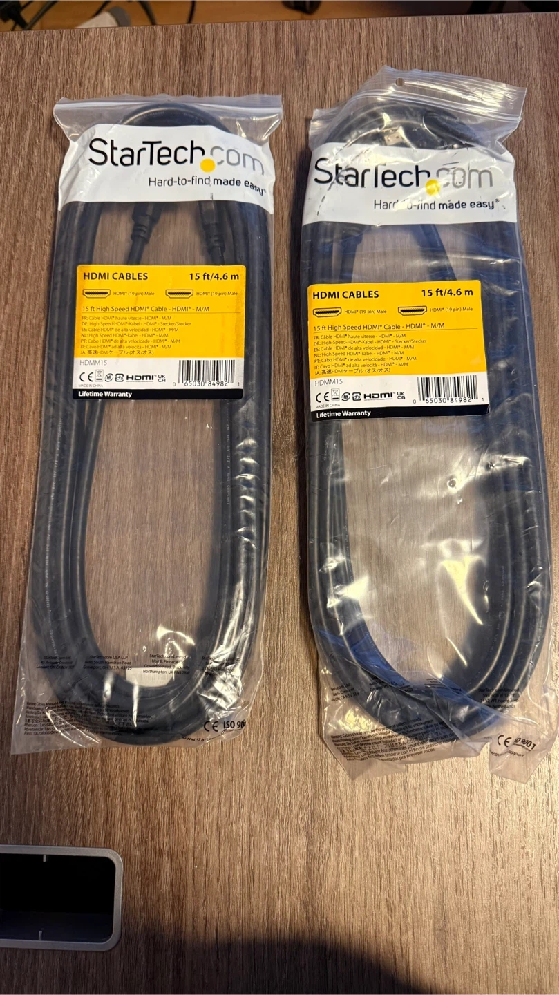 Buy & SellStarTech.com HDMI Cables (2 Pack)StarTech.com HDMI Cables (2 Pack)$15Two 15 ft High Speed HDMI cables from StarTech.com. They're M/M type with full HD support.ConditionNewBrandStarTech.comWHERE TO MEETCheck LocationView MapSELLERMikeEast Credit362 reviews0 chats·0 favorites·4 viewsSEND CHAT TO SELLERHi Mike! I’m interested in your listing.Hi Mike! I’m interested in your listing.Get the Karrot app to chatSign In to chat