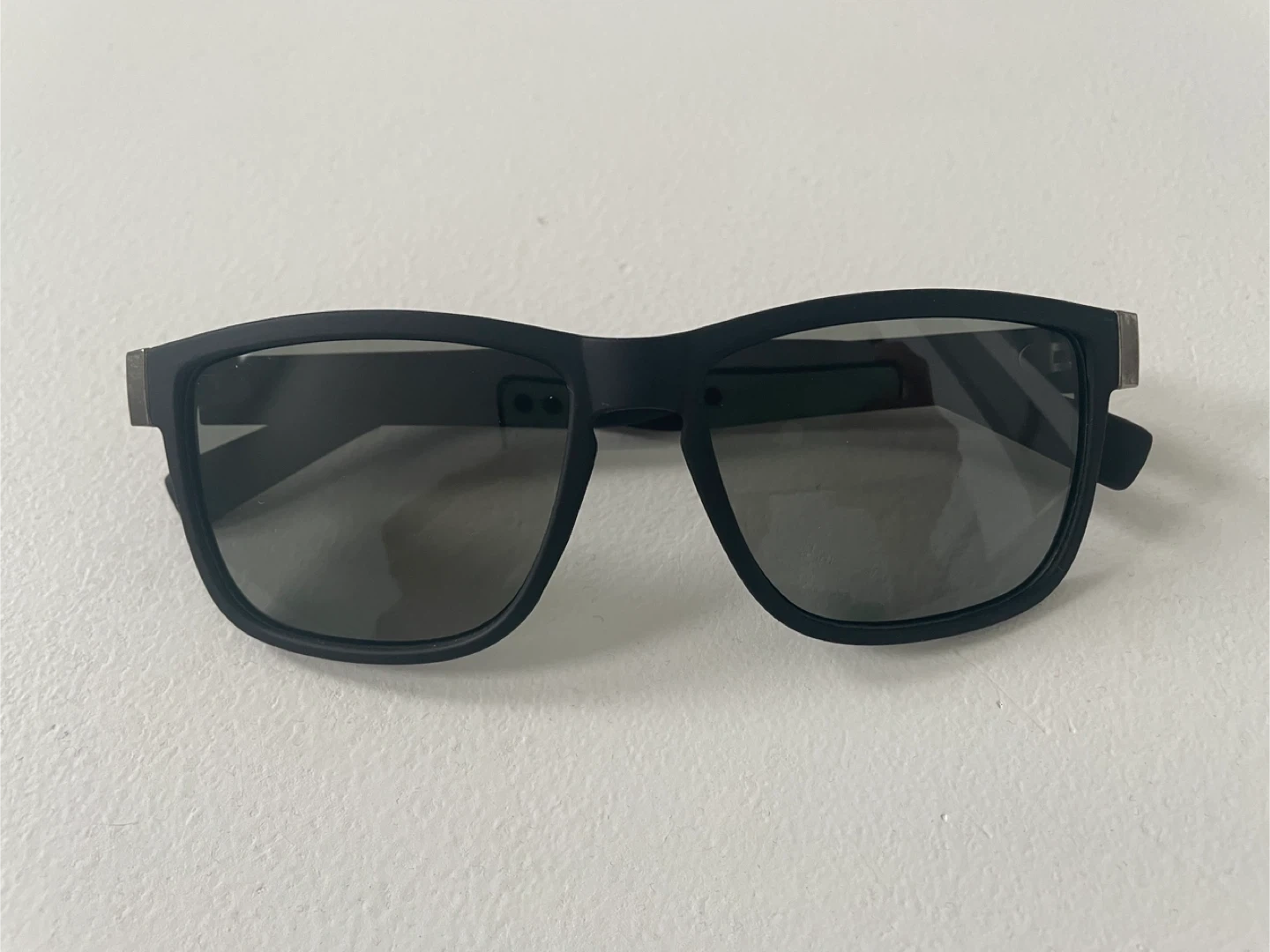 These black sunglasses feature tinted lenses for sun protection. They have a sleek design with a silver accent on the arms. Great for keeping the sun out of your eyes!