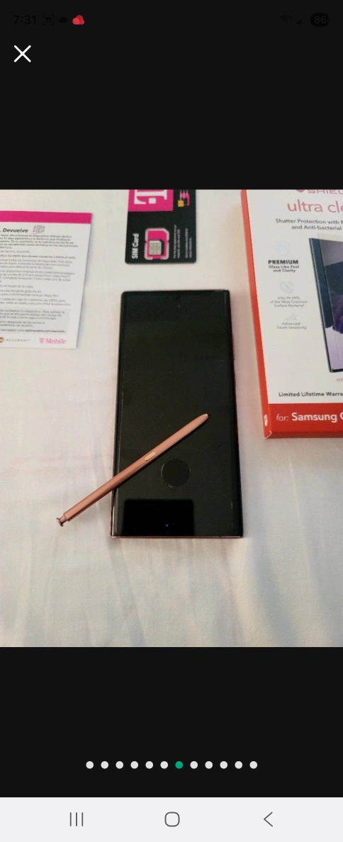 A Samsung Galaxy Note 20 Ultra 5G, likely in excellent condition, with all the original accessories. This phone would be great for relaxing at home or traveling. Also comes with home charger, screen protector and hard case with credit card holder. You will also get a used but great condition Galaxy Watch with phone