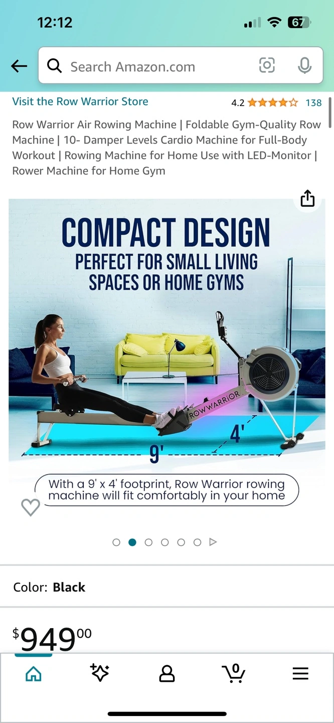 Foldable gym-quality rowing machine. 10-damper levels. Full-body workout.
