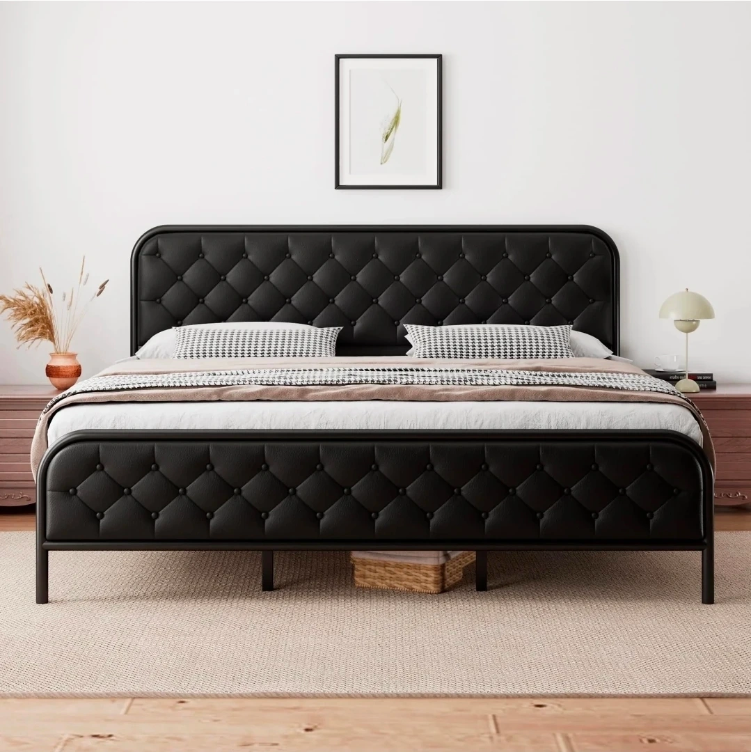 ✨️ King Size Platform Bed Frame - Sleek Black Faux Leather✨️