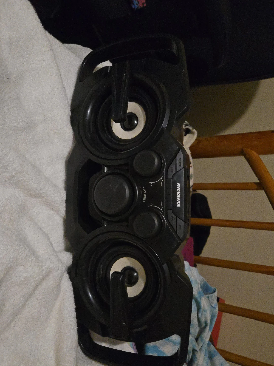 15Selling a Sylvania portable Bluetooth speaker. It's black and has a handle for easy carrying. Great for parties or just listening to music around the house!