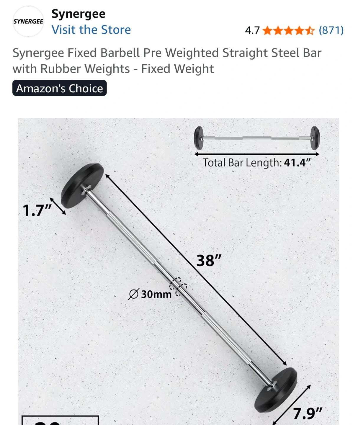 12Selling a Synergee fixed barbell with rubber weights! 10 LB