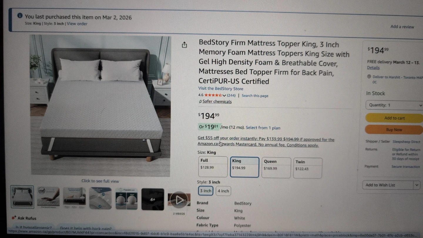 Matress topper is completely new. Purchased from Amazon 5 days before. Also invoice available