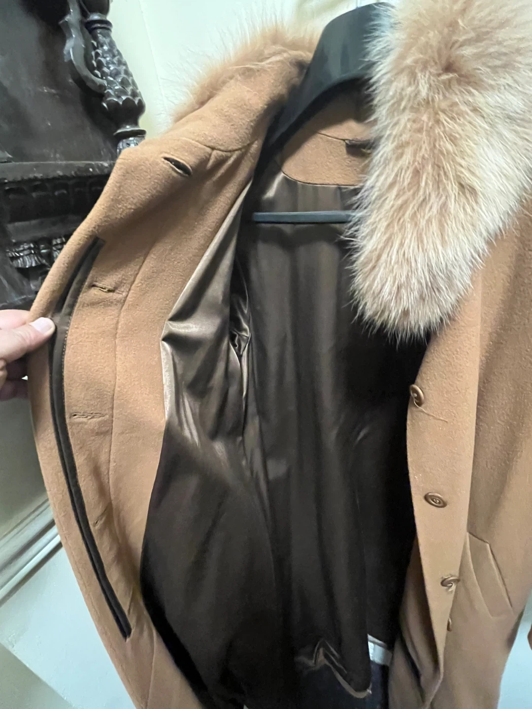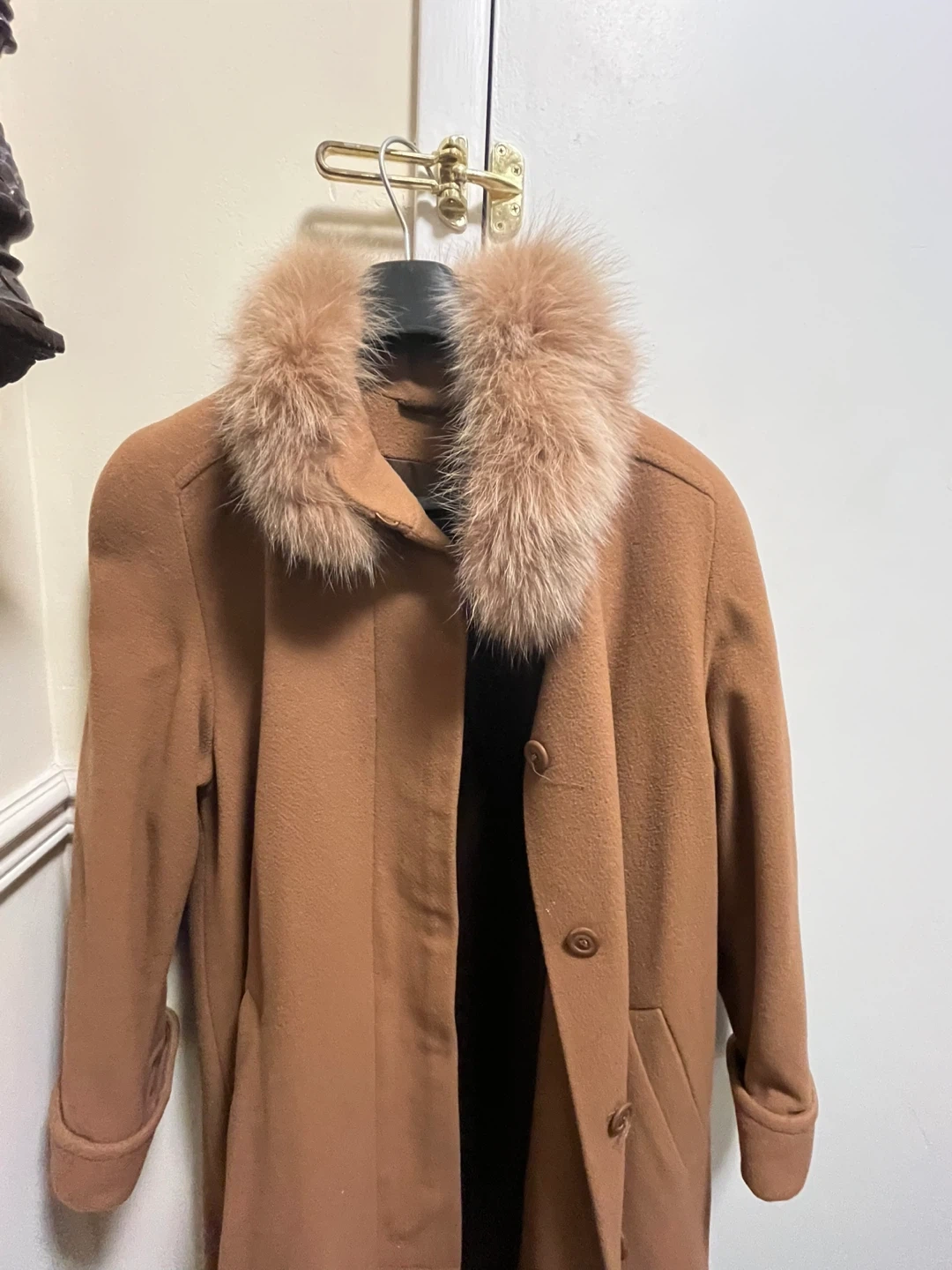 Vintage Qutex Camel Coat with Fur Collar - Size 4
