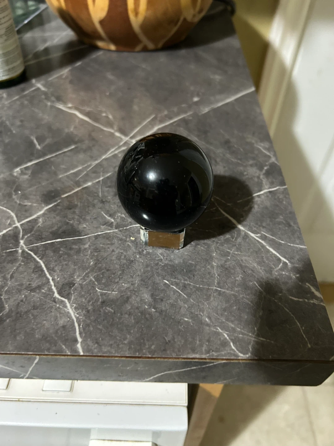 Selling a black crystal ball in great condition! It has a small, square stand. Perfect for decor or meditation they’re about 2 inches also have a six inch black one and a six inch clear one.