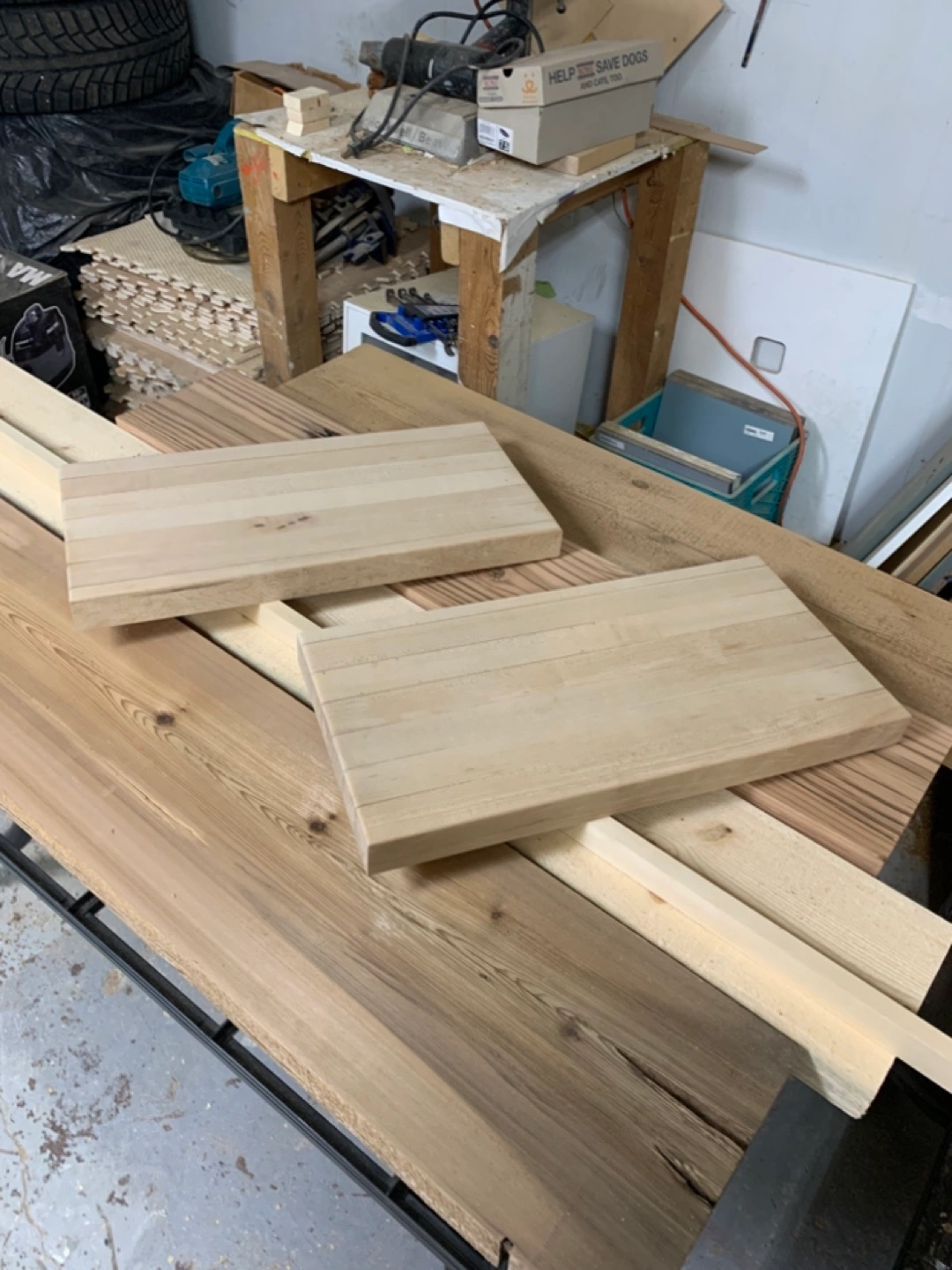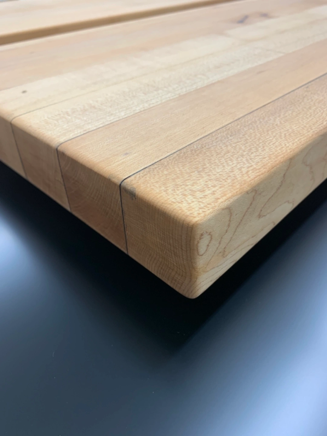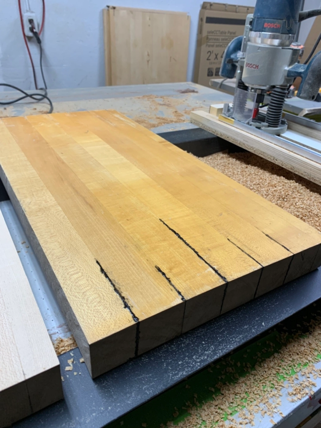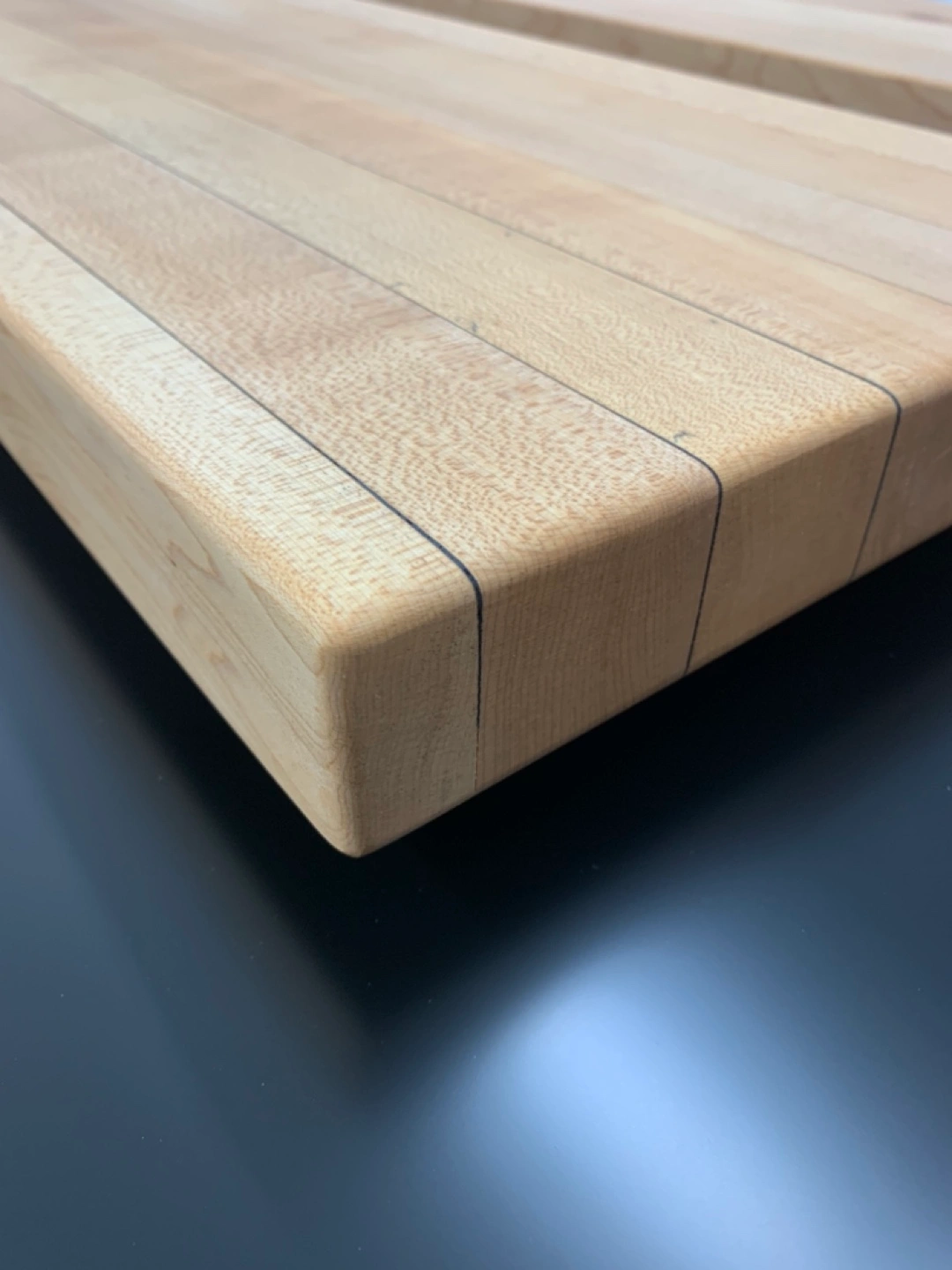 Just completed these large butcher blocks salvaged from a dark garage and originating from the Mint. 13 pounds each, black resin accents. Oiled and beautiful. Price is for one.