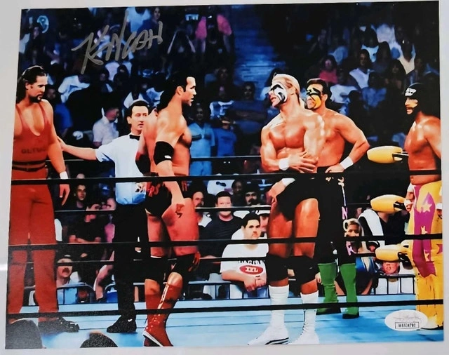 Capture a piece of wrestling history with this authentic 8x10 photo signed by the legendary Kevin Nash. Celebrate your fandom for WWE, WWF, and WCW with this original collectible that showcases your favorite superstar from the world of NWO wrestling. Ideal for display in your home or office, this photo is a must-have for any serious wrestling enthusiast or collector of sports memorabilia. Own a snapshot of wrestling lore that's personally autographed by the star of countless iconic matches and memorable moments in the ring.
