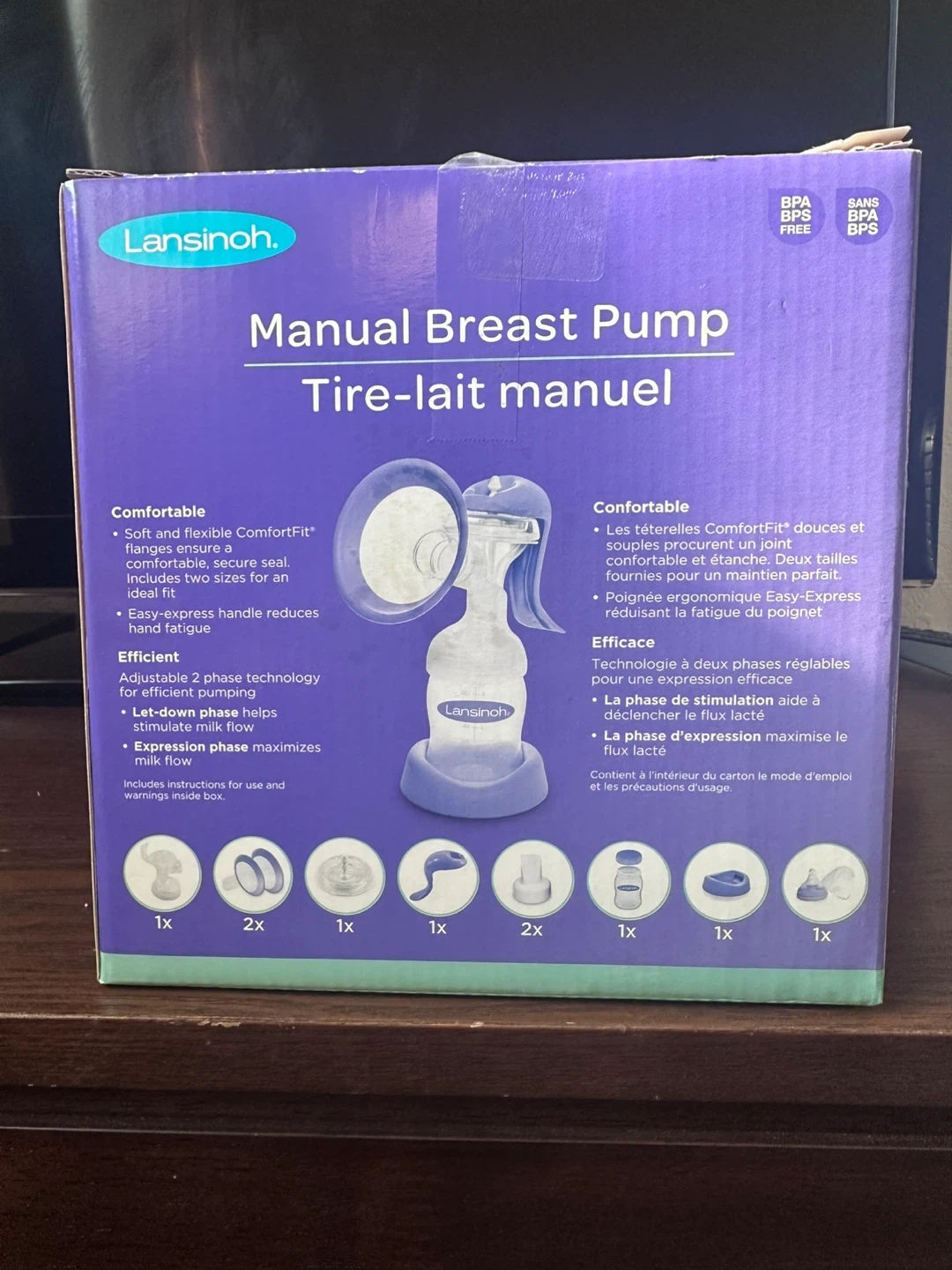 This Lansinoh manual breast pump is designed for comfort and efficiency.