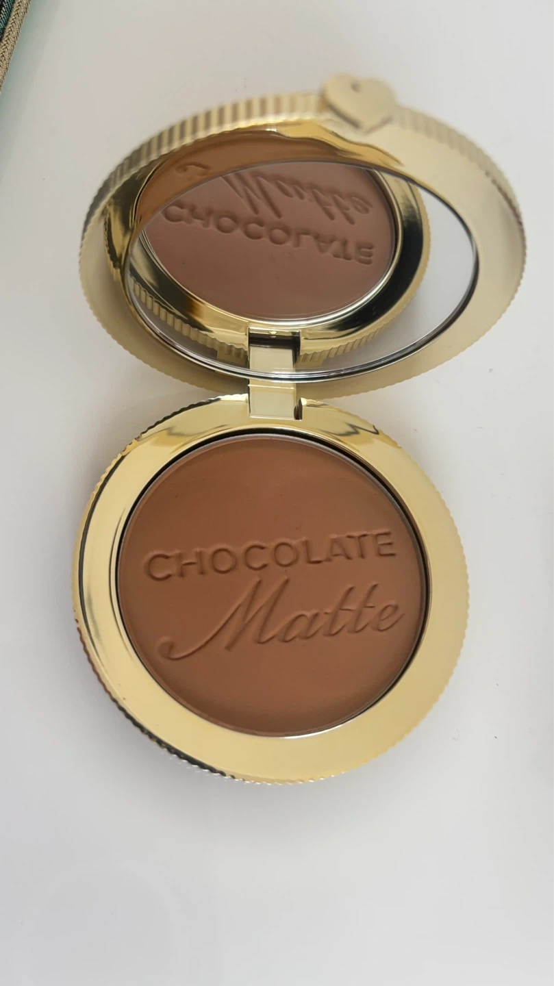 Too Faced Chocolate Soleil Longwear Matte Bronzer. Made with 100% Natural Cocoa Powder. Net Wt. 8 g / 0.28 Oz. Bronzer comes in a compact with a mirror.