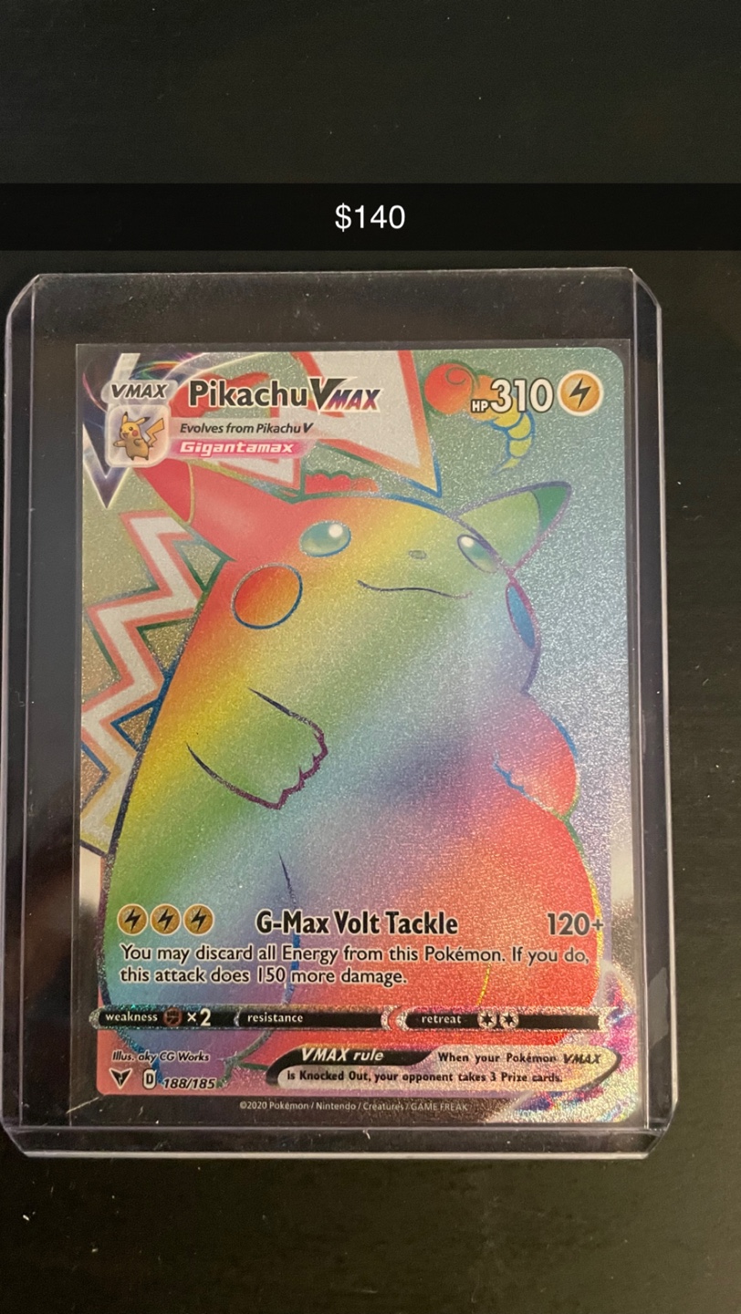 1 / 21 / 2Buy & SellPikachu VMAX 188/185 Vivid VoltagePikachu VMAX 188/185 Vivid Voltage$140Great condition Pikachu, if graded, could be worth up to $330. Price is somewhat negotiableConditionNewWHERE TO MEETOutside of the Tim HortonsView MapSELLERDylanThe Beaches24523 reviews0 chats·0 favorites·12 viewsSEND CHAT TO SELLERHi Dylan! I’m interested in your listing.Hi Dylan! I’m interested in your listing.Get the Karrot app to chatSign In to chat