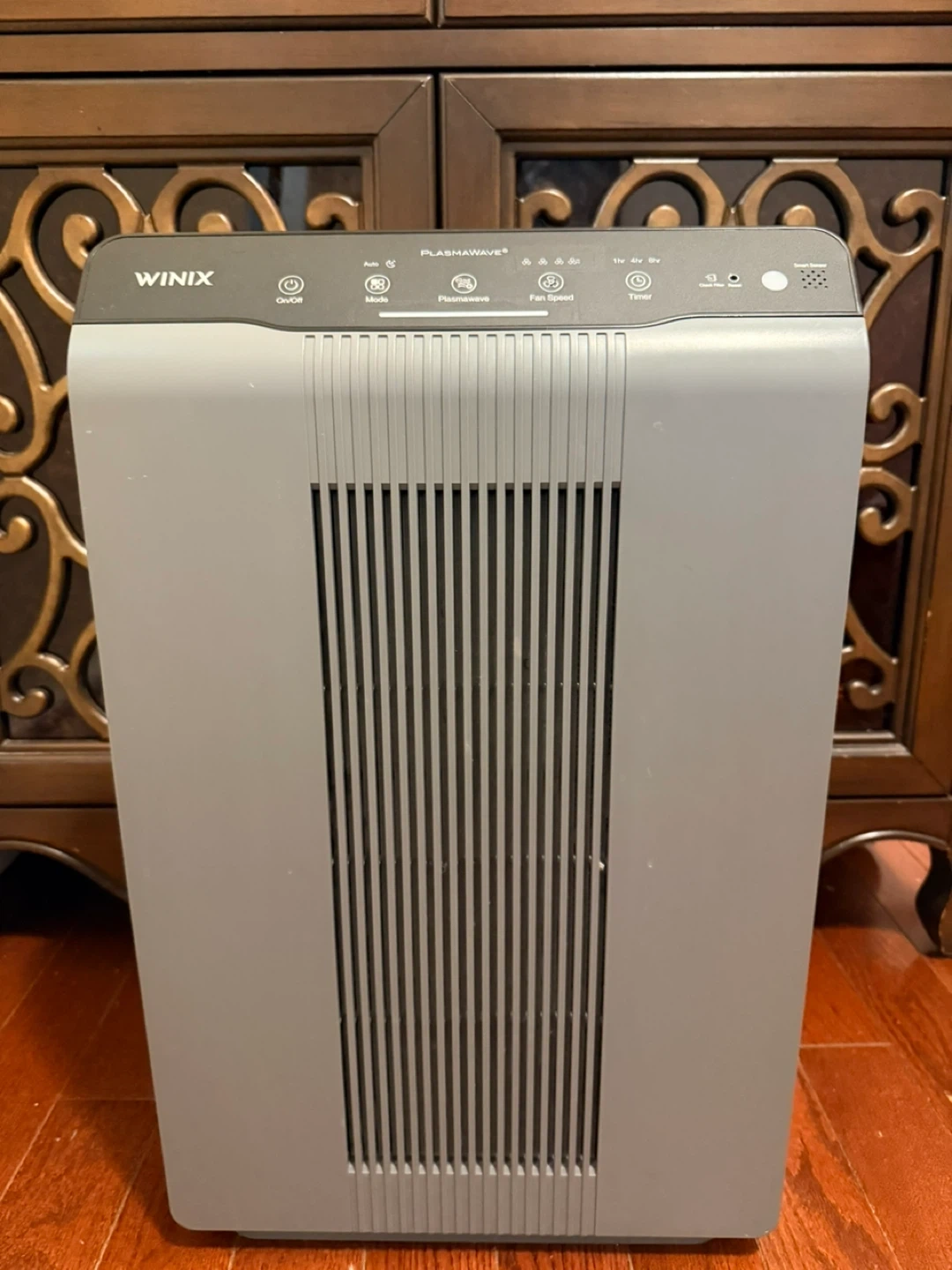 This Winix 5300-2 air purifier features a True HEPA filter, PlasmaWave technology, and an odor-reducing carbon filter.