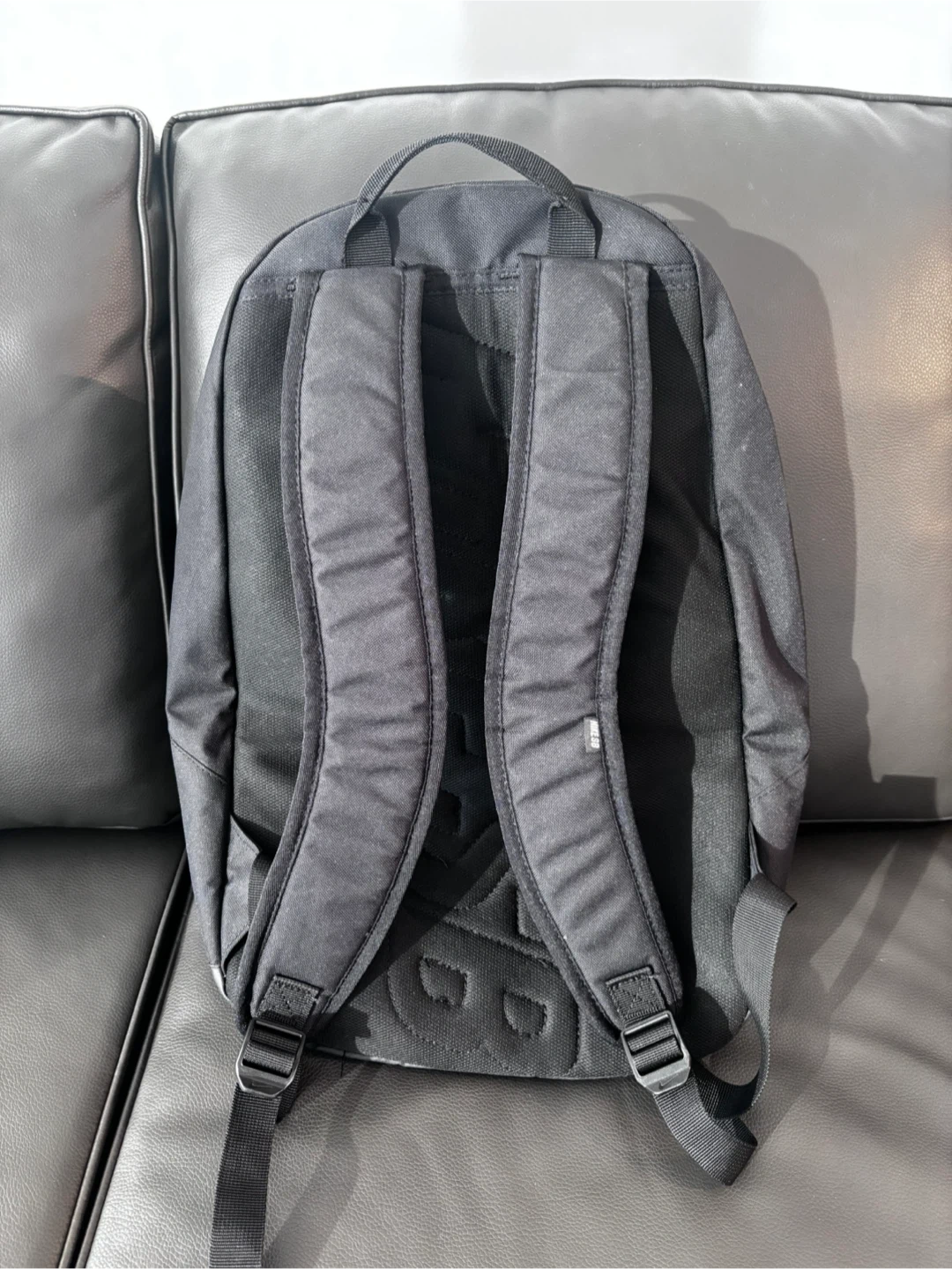Black backpack. The interior of the bag is also divided into compartments. The size is 25L. It hasn't been used much, so it's in great condition!