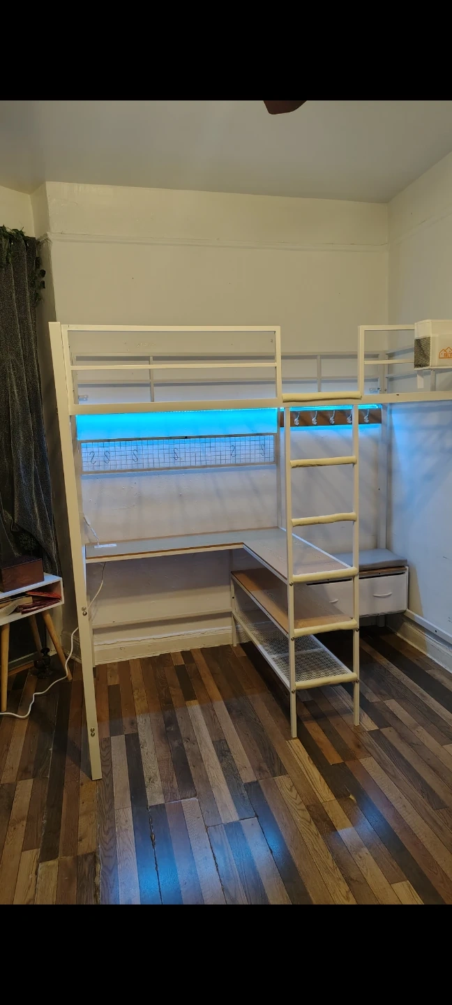 White Loft Bed with Desk and Shelving