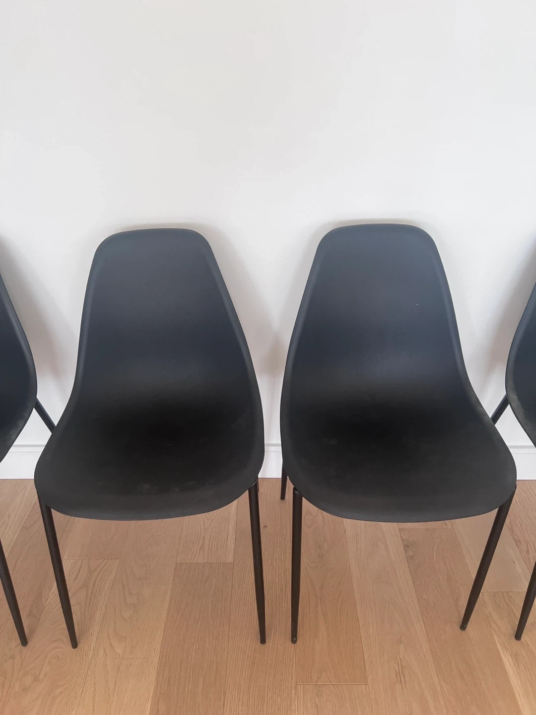 Selling a set of four stylish black dining chairs! They're in great condition and would look fantastic in any modern dining space.