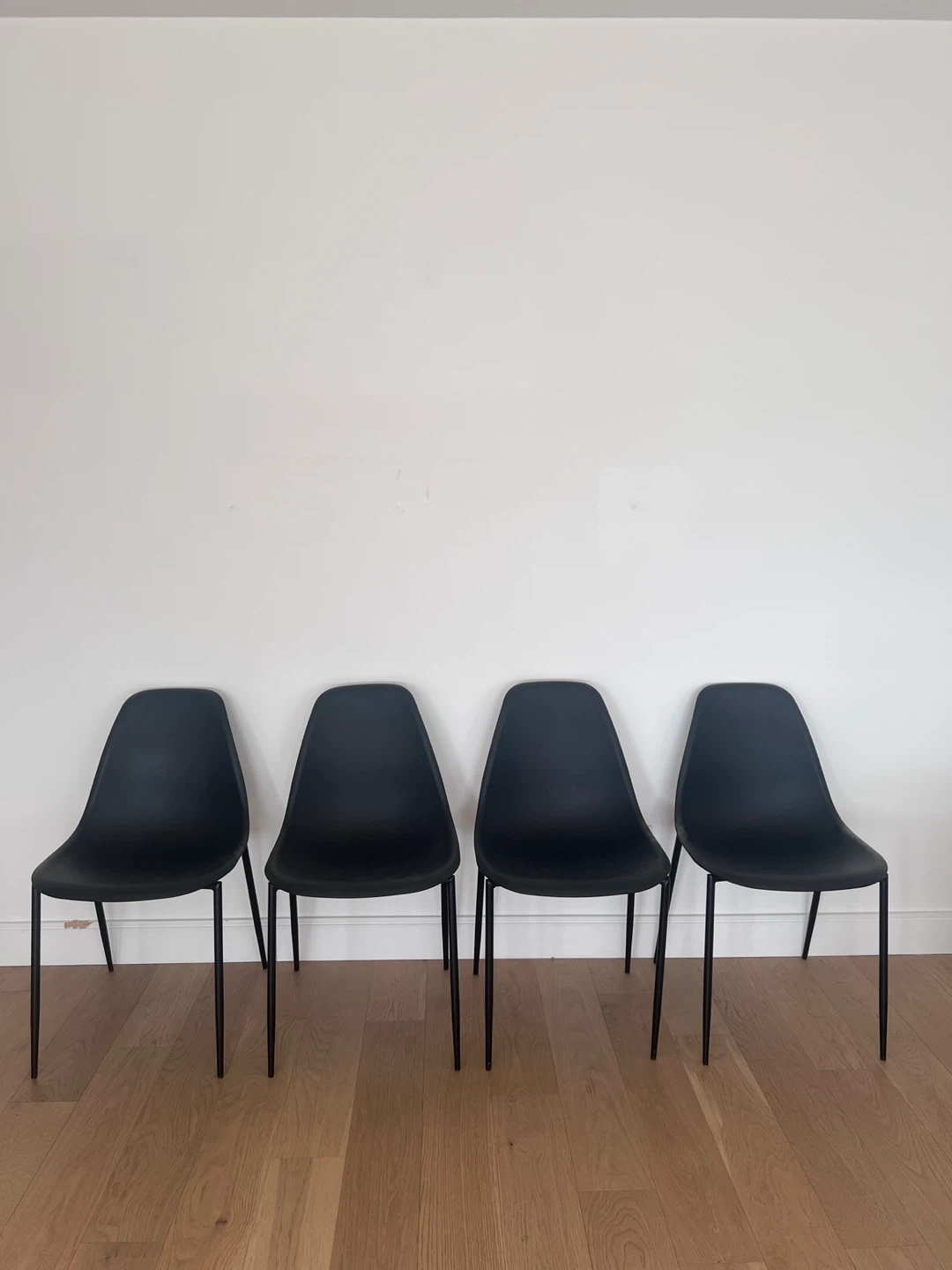 Selling a set of four stylish black dining chairs! They're in great condition and would look fantastic in any modern dining space.