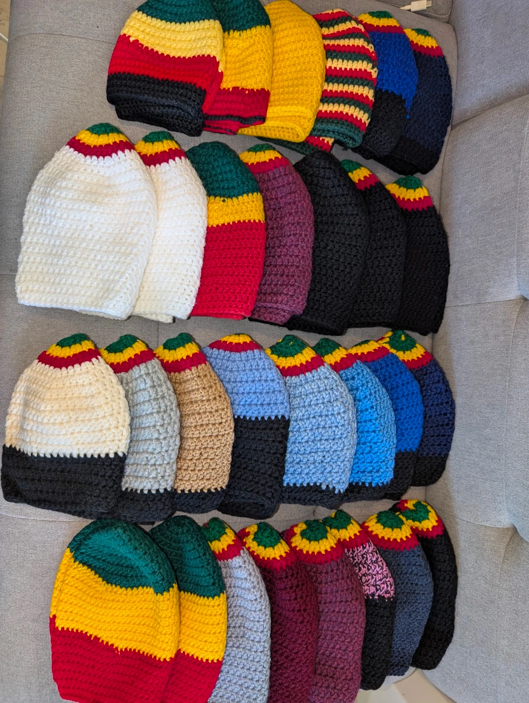 Crocheted Beanies - Rasta Colours and Solid