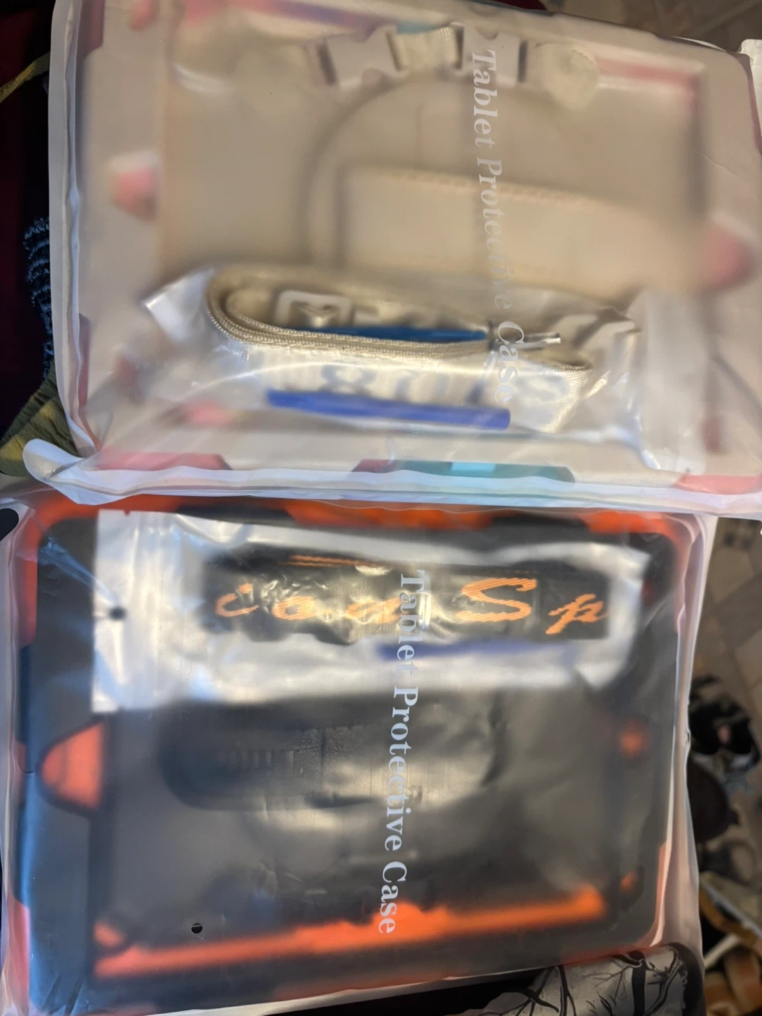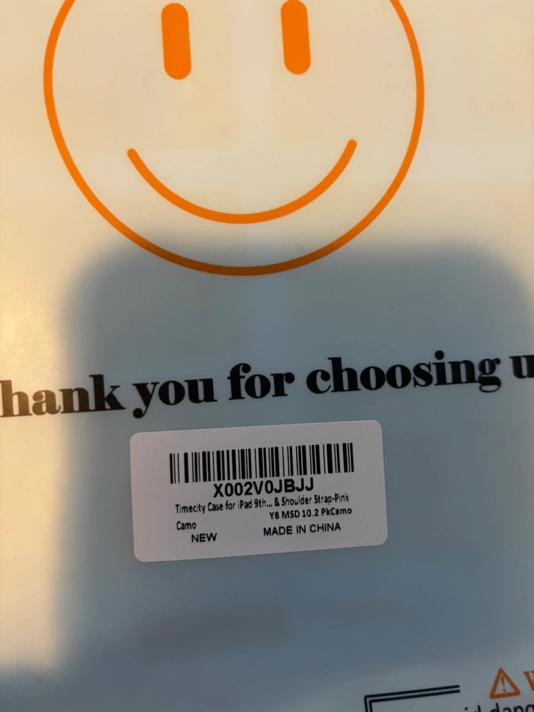 I have a new Timecity iPad case for the 9th, 8th, and 7th generation iPads with a 10.2-inch screen. It comes with a shoulder strap and is available in pink camo and orange-black