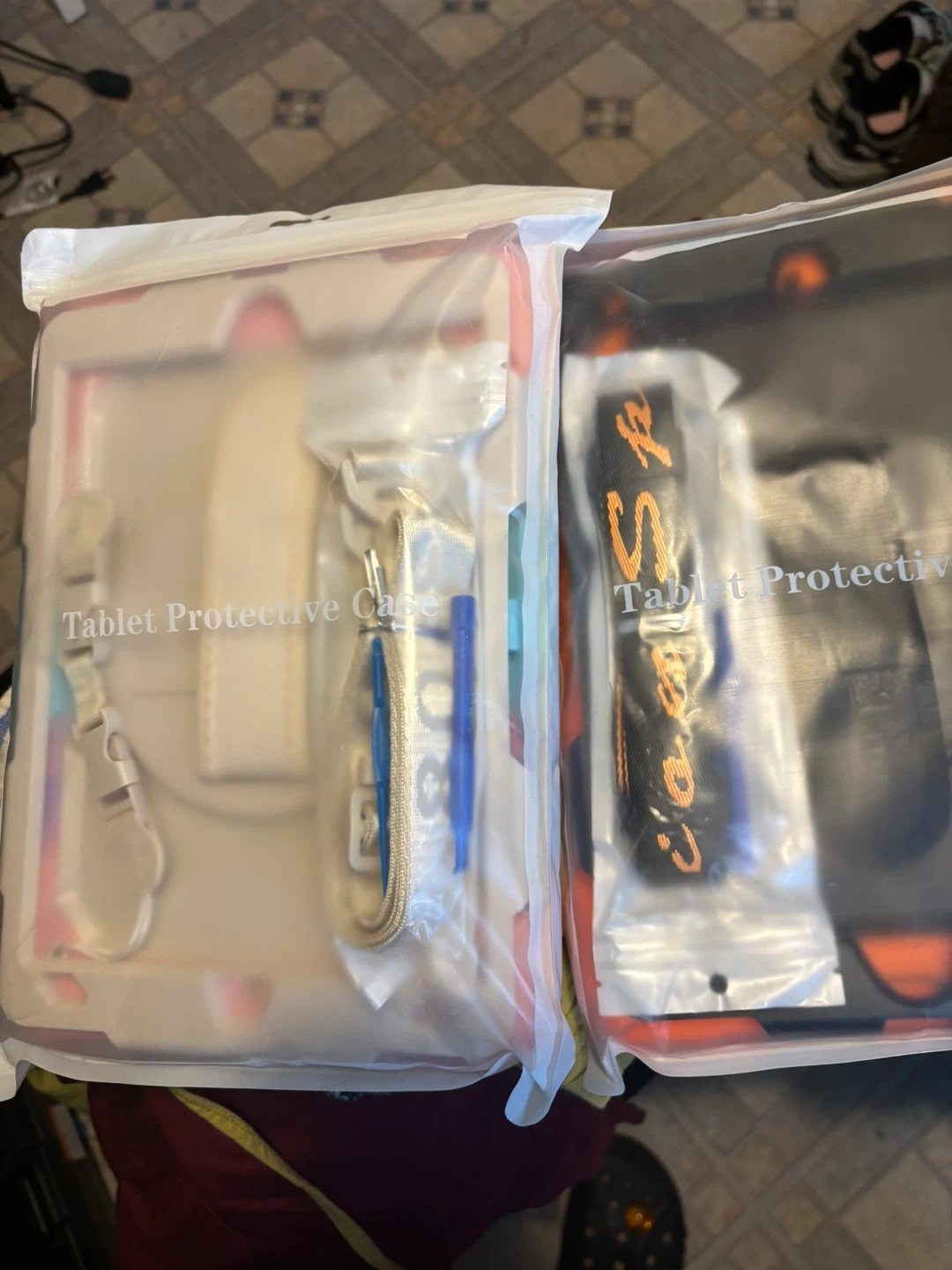 I have a new Timecity iPad case for the 9th, 8th, and 7th generation iPads with a 10.2-inch screen. It comes with a shoulder strap and is available in pink camo and orange-black