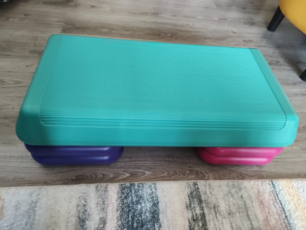 An adjustable 1 to 3 level platform for workouts.