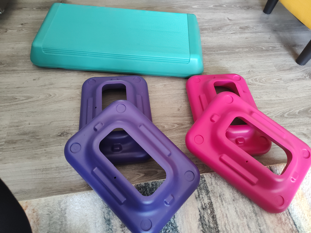 An adjustable 1 to 3 level platform for workouts.