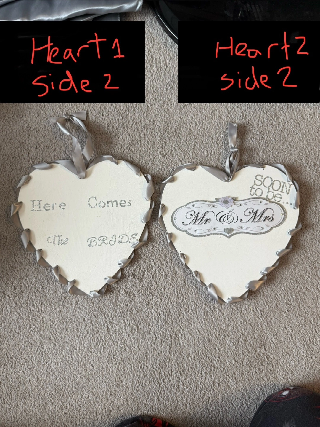 (Had bridesmaids holding them, 2 signs, different writing on each side- see photos for details. Dimensions: 8.75 x 8.75 inches)