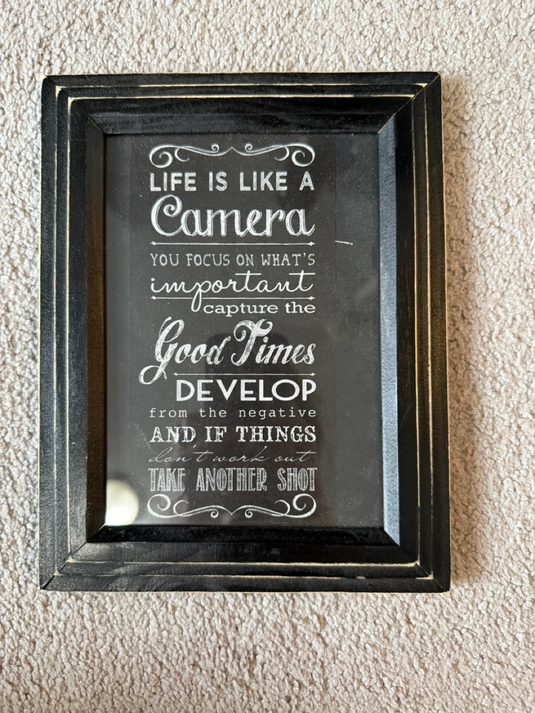 (Used at the liquor bar, the frame is a rustic black wood, dimensions: 6.75 x 9.7 inches)