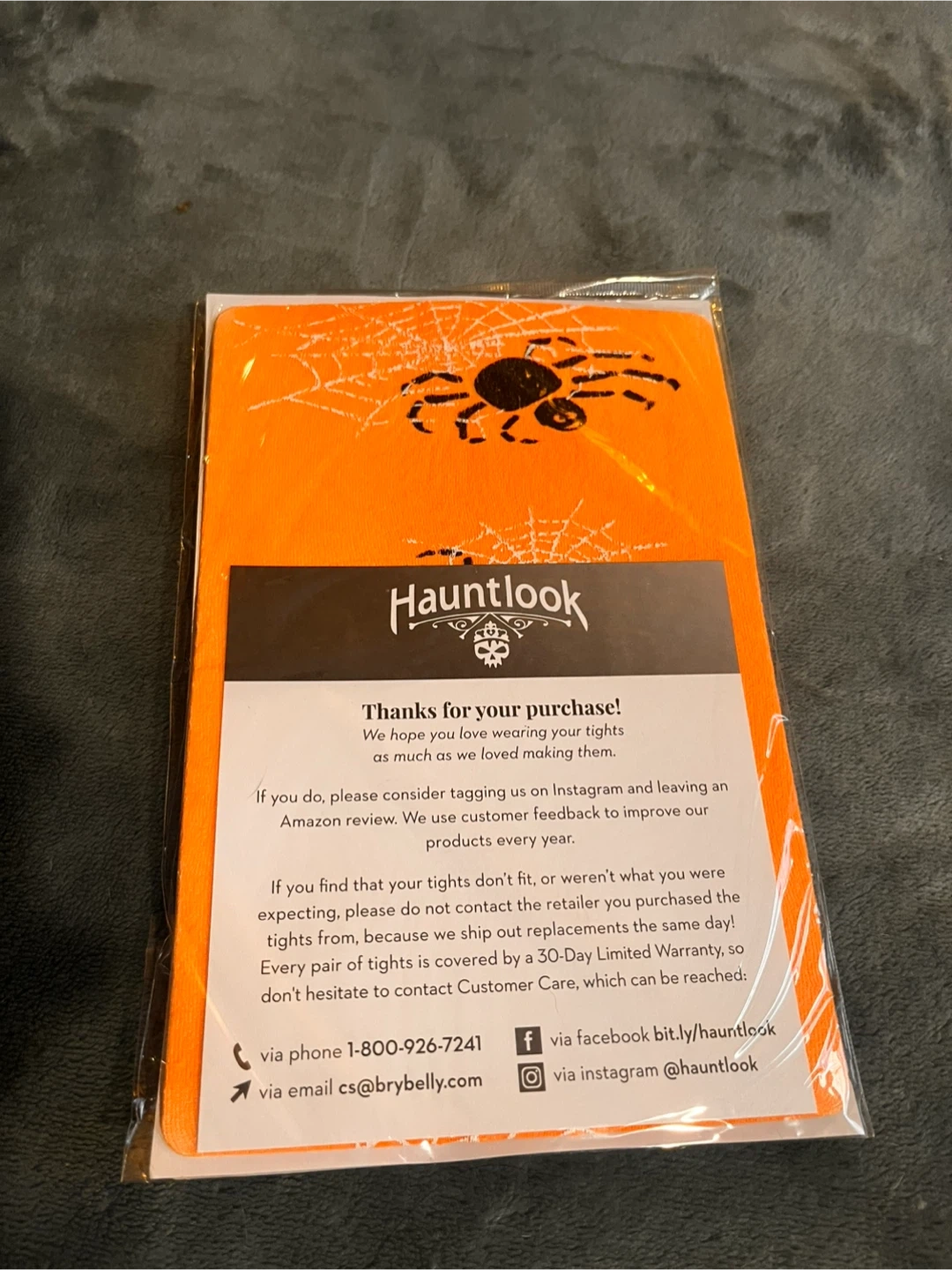 New Hauntlook kids' costume tights in size medium! These are orange with a spider and web design, perfect for Halloween or dress-up. They come in the original packaging.