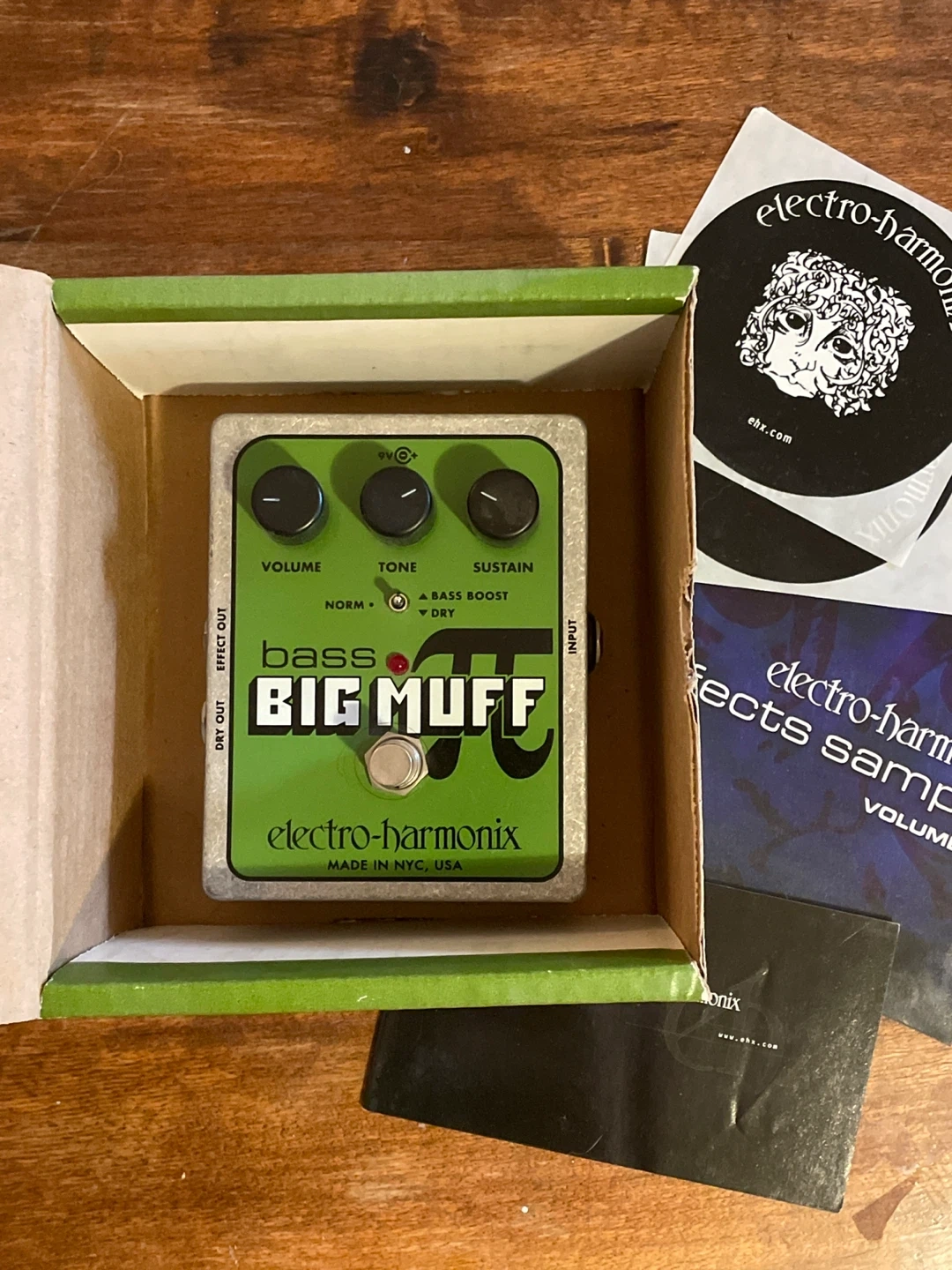 This is an Electro-Harmonix Bass Big Muff Pi fuzz distortion pedal. It's designed specifically for bass guitars and includes the original box. Includes effects sampler CD, stickers and paperwork. Classic big fuzz and distortion pedal!