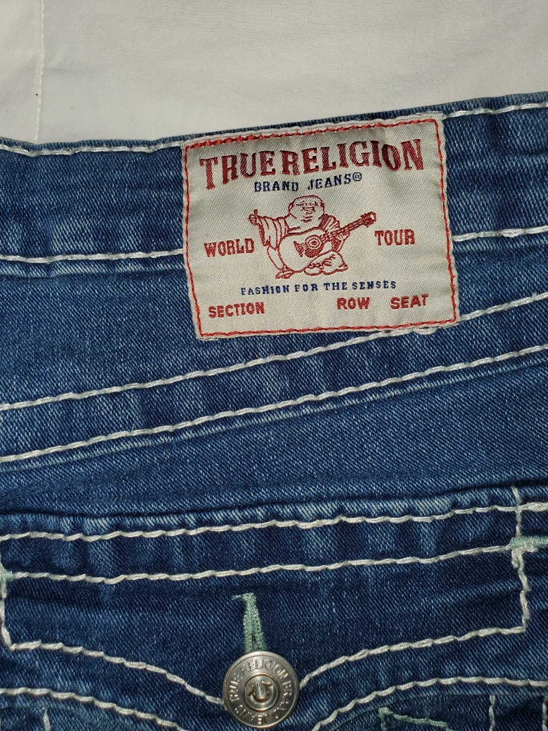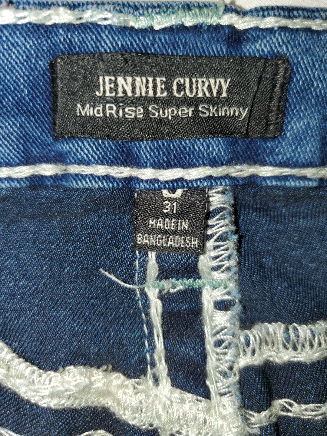 These are True Religion Jennie Curvy jeans. They're a mid-rise, super skinny fit. Size 31. Made in Bangladesh. Willing to negotiate asking price