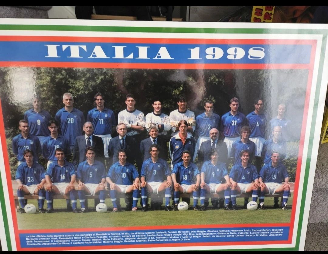 Selling a photo of the Italia 1998 team! It features players like Dino Baggio, Gianluca Pagliuca, and Alessandro Del Piero