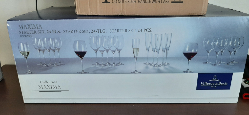 Selling a brand new Villeroy & Boch Maxima Starter Set, which includes 24 pieces! This set is perfect for those who appreciate quality glassware and want to elevate their dining experience. The set includes a variety of glasses.