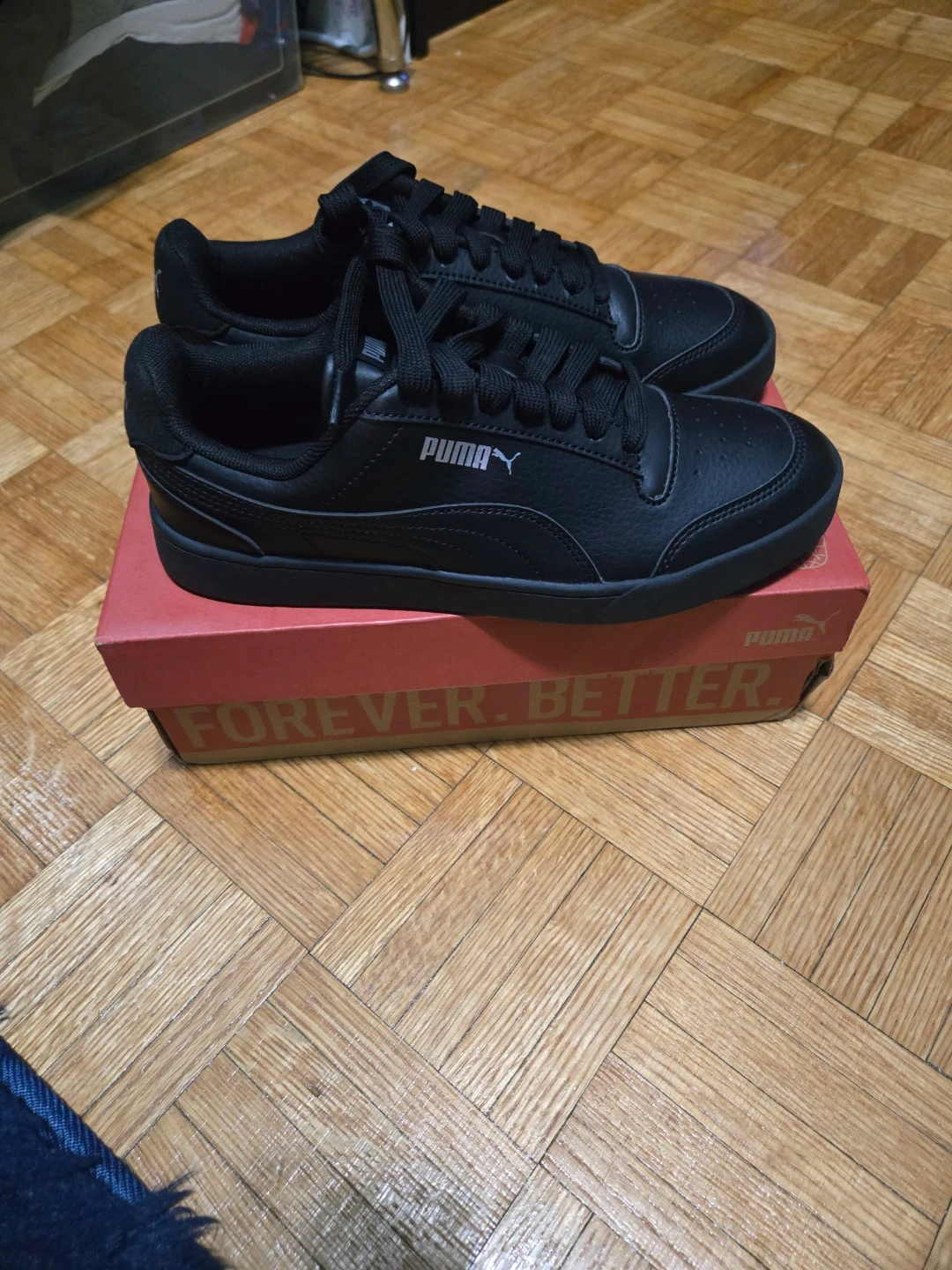 Selling a pair of Puma Shuffle Jr shoes in black! These are perfect for everyday wear and have a classic Puma design.